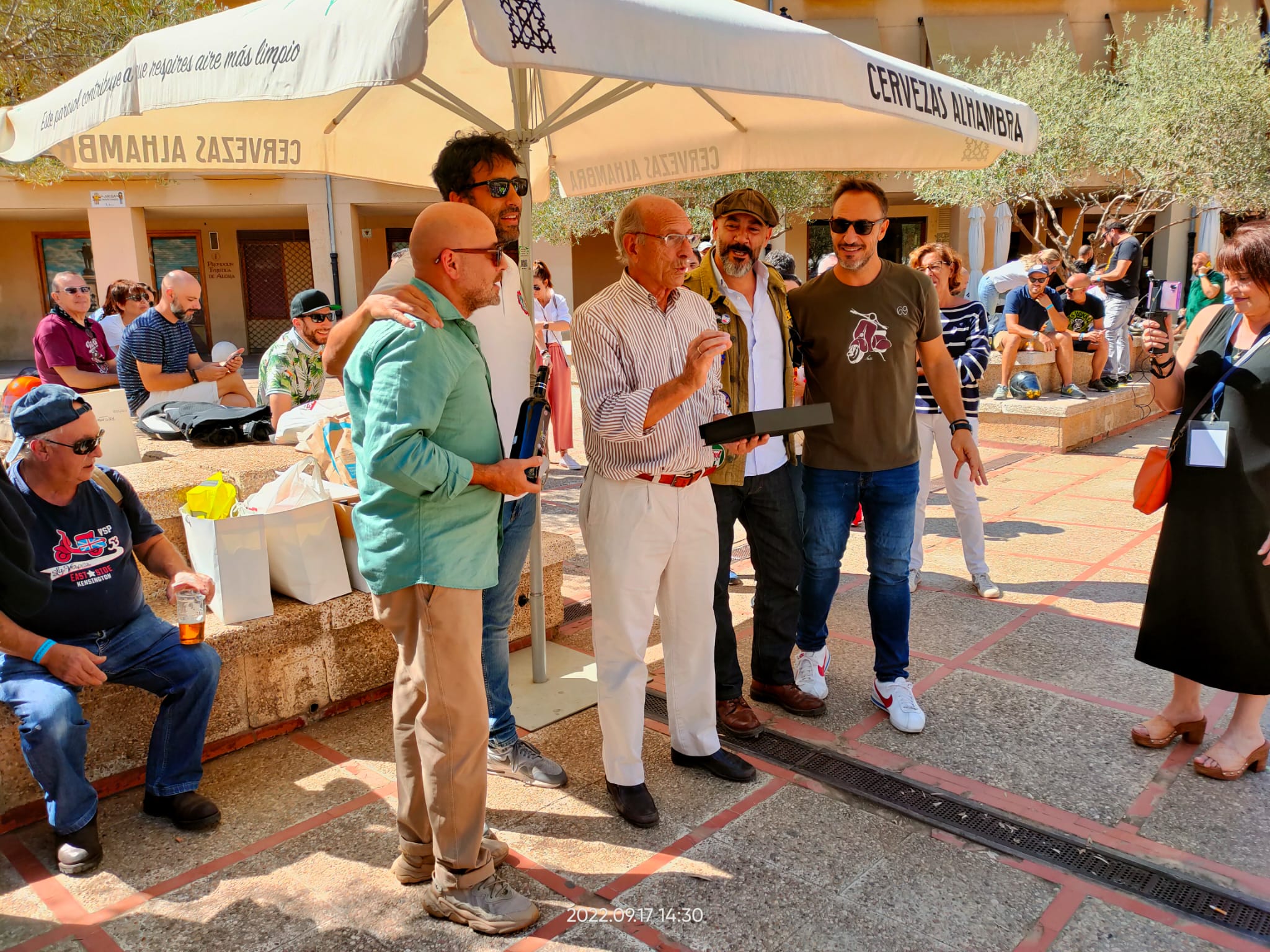 De ahí vuelta, ya a pie, a la sede del Club Vespa Alcalá para entregar recuerdos y galardones. Desde la Vespa más bonita de la concentración a la mejor restaurada. Pero también a todos los clubes participantes destacando el scooterista más viajero (llegó rodando después de 11 horas desde Barcelona), al club más numeroso (Vespa Club Cuenca) o al más lejano (Vespamanía Tenerife).