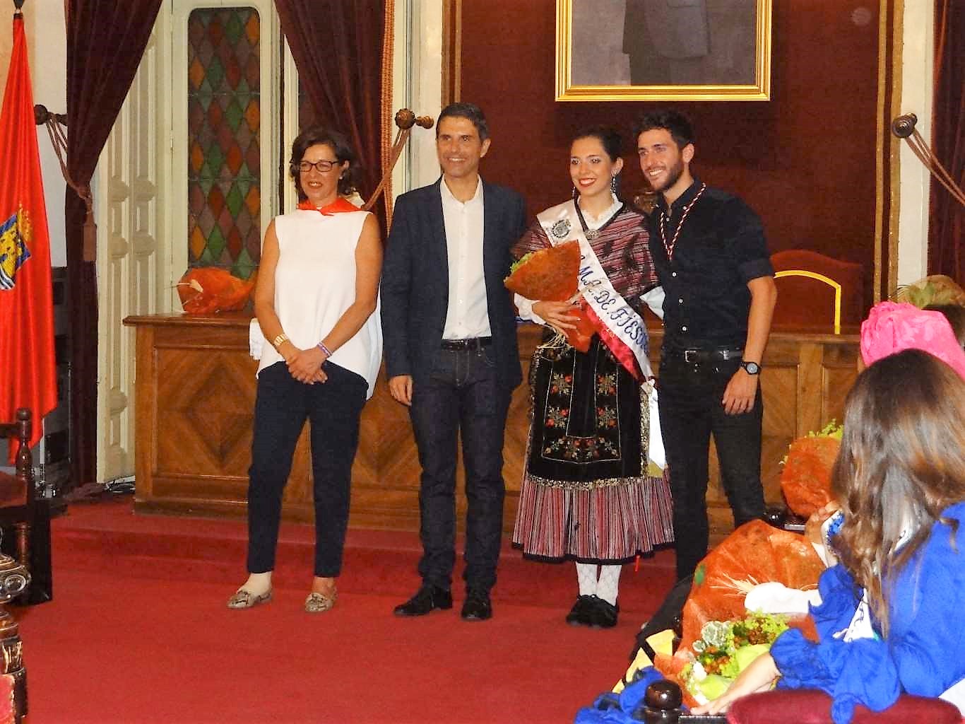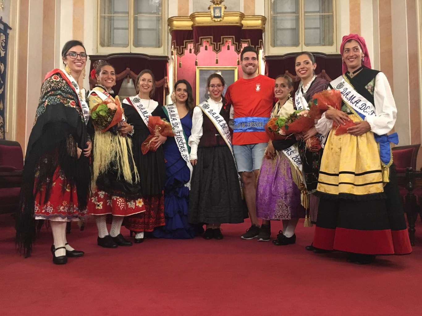 Las Damas de Ferias de las distintas Casas Regionales de Alcalá fueron entrando por orden al Salón de Plenos del Ayuntamiento de Alcalá de Henares, donde una por una fueron saludadas por el alcalde de Alcalá, Javier Rodríguez Palacios, la concejala de festejos, María Aranguren y el cantante alcalaíno de Auryn, Álvaro Gango, que solo unos minutos después protagonizó el pregón en el balcón del Ayuntamiento ante centenares de asistentes.