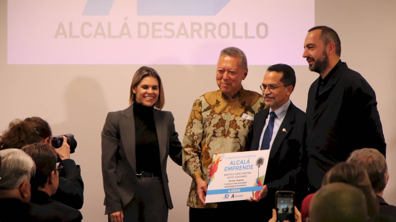 La alcaldesa de Alcalá de Henares, Judith Piquet, ha presidido este acto, que ha contado también con la asistencia de los tenientes de alcalde, Víctor Acosta y Gustavo Severien; del concejal de Desarrollo Económico y Empleo, Antonio Peñalver, y del gerente de Alcalá Desarrollo, Manuel García Hidalgo, así como otros miembros de la Corporación Municipal. La presidenta de la Asociación de Empresarios del Henares (AEDHE), Laly Escudero, junto a miembros de su directiva; y los secretarios generales de CC OO y UGT, Vicente García Castillo y Jesús La Roda, respectivamente, también han participado en la entrega de premios, que ha contado además con la presencial especial del embajador de Indonesia en España, Muhammad Najib, al frente de una nutrida delegación diplomática.