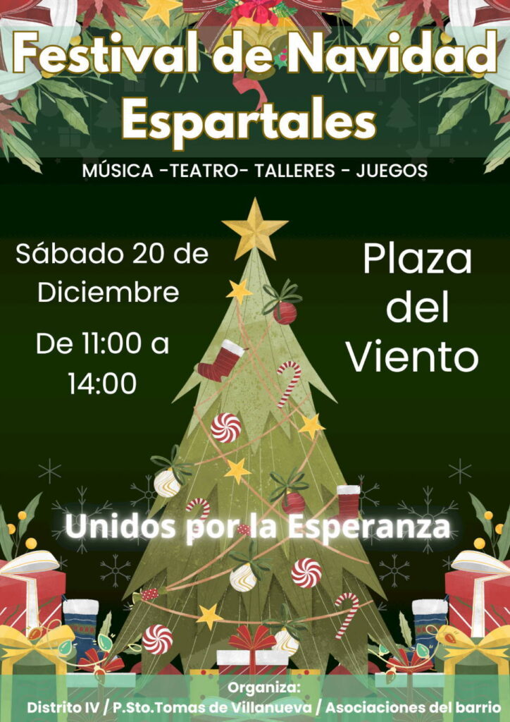 El barrio de Espartales, de la mano del Ayuntamiento y el distrito IV, organiza estas Navidades su primer Festival de Navidad, una iniciativa impulsada por vecinos y colectivos locales con el objetivo de fortalecer los lazos comunitarios y crear un espacio de encuentro, ilusión y convivencia, especialmente pensado para los más pequeños.