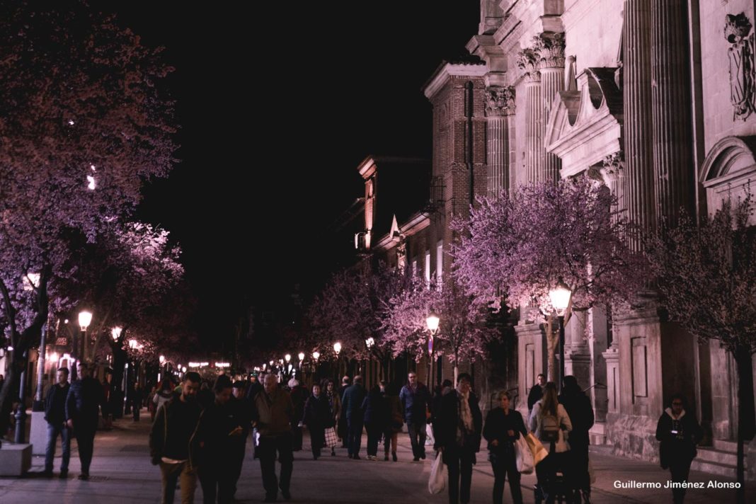 A continuación puedes ver algunas de sus imágenes, rincones que has visto mil veces pero que con la noche y las flores en los árboles cobran un significado totalmente distinto.