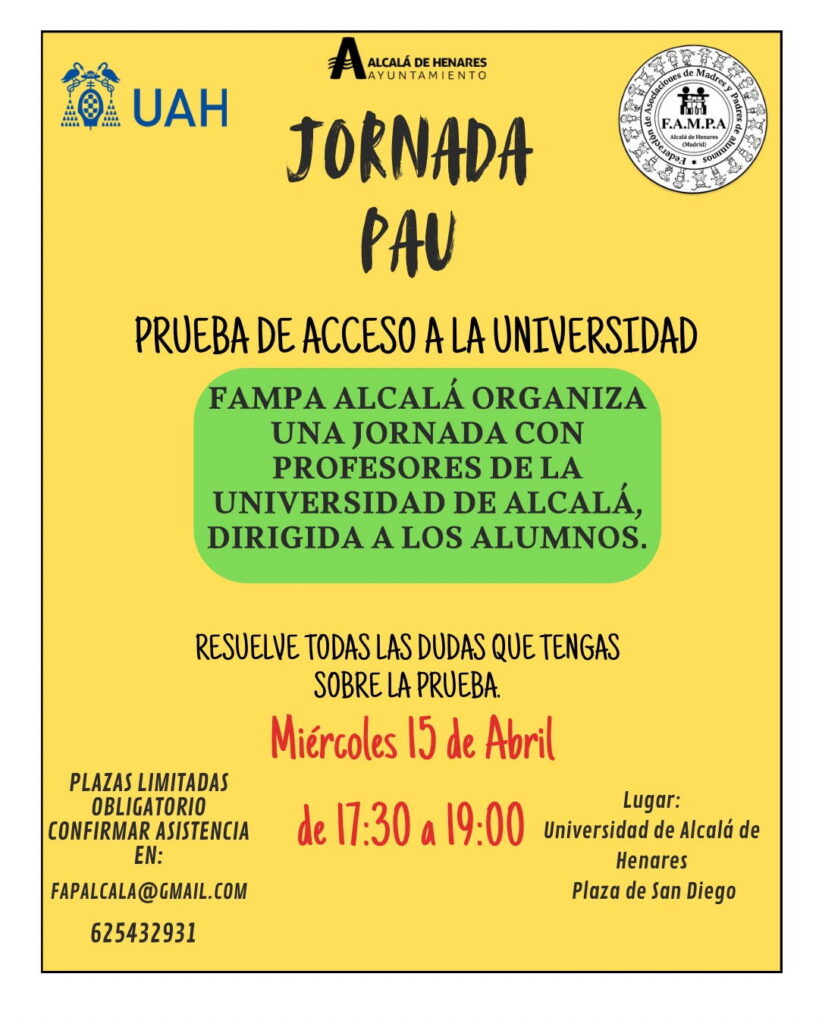 Desde FAMPA Alcalá han querido agradecer expresamente la implicación de la Universidad, que un año más se suma a esta iniciativa, además de facilitar el espacio para su celebración. La participación de profesionales del ámbito universitario permitirá ofrecer una visión directa y rigurosa del proceso de acceso a la educación superior.