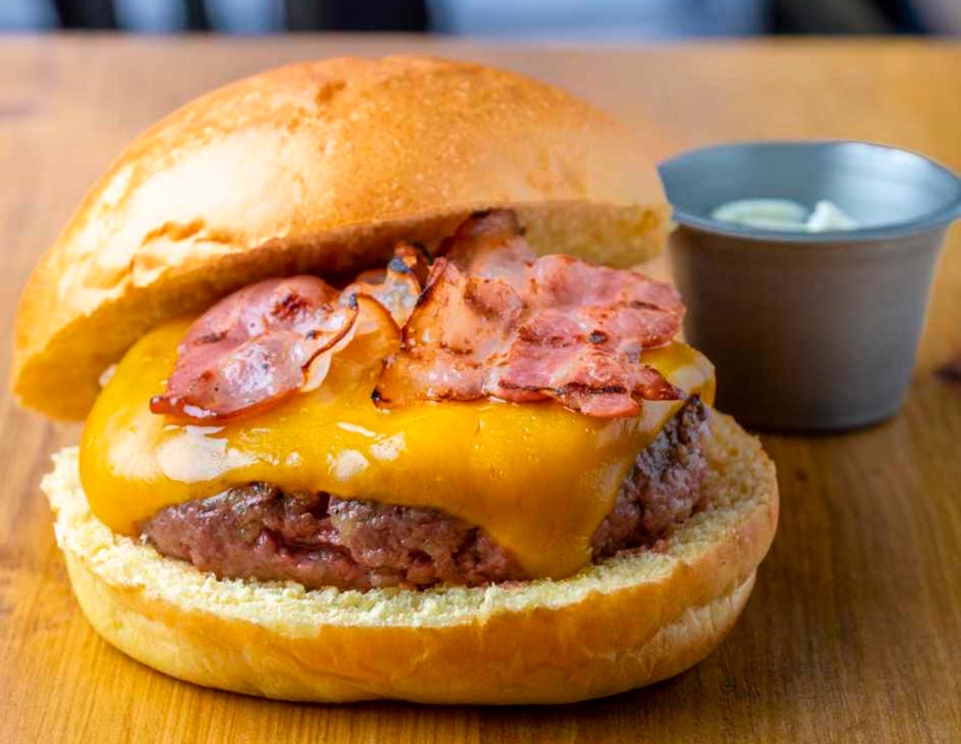 Frankie Burgers se fundamenta en dos máximas: respetar el carácter nice & easy de las hamburgueserías tradicionales —sencillas en fondo y forma, con una carta brevísima pero todas ricas— y hacer que la casa se conozca por un icono, en este caso, la Frankie Cheese Bacon.