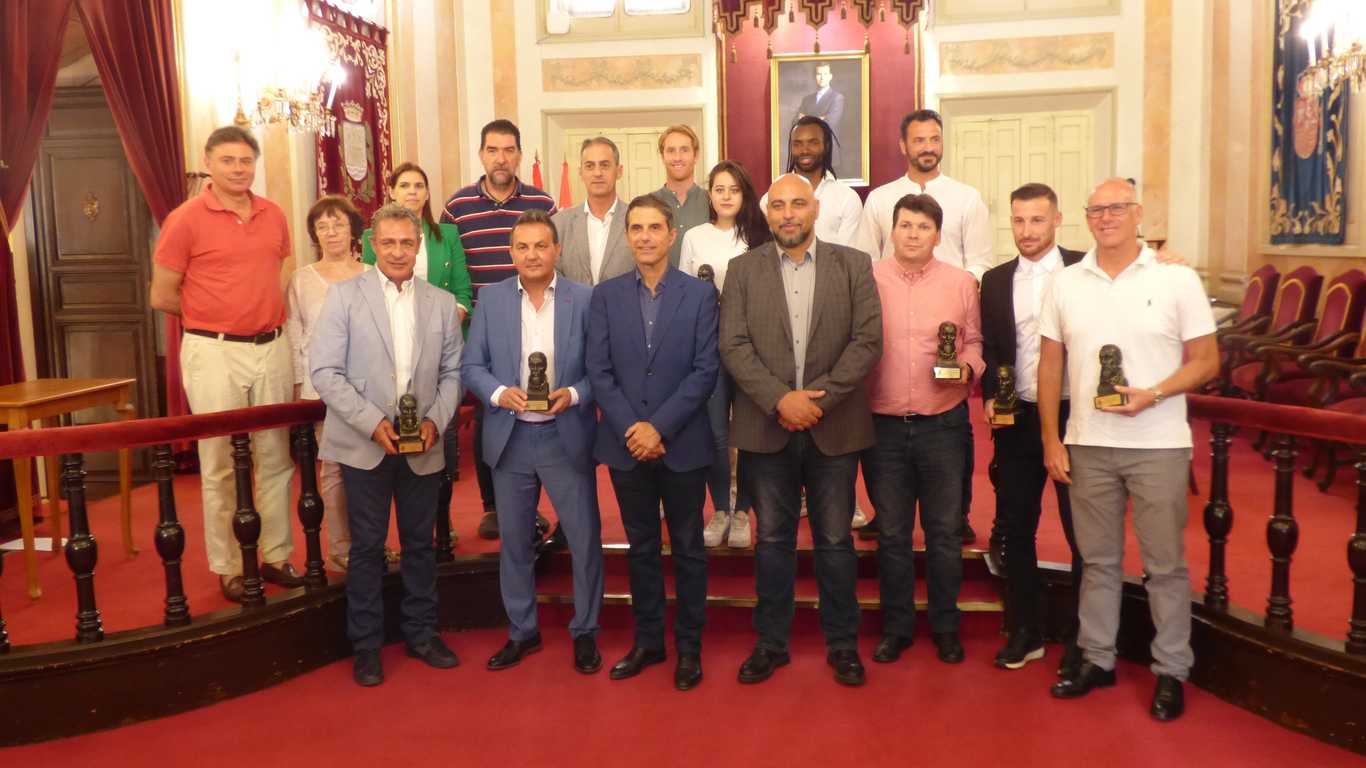 Aunque no estaban todos los que eran si eran todos los que estaban. Y, precisamente, todos ellos han recogido un busto de Cervantes y a continuación han firmado en el libro de honor del Deporte de la ciudad.