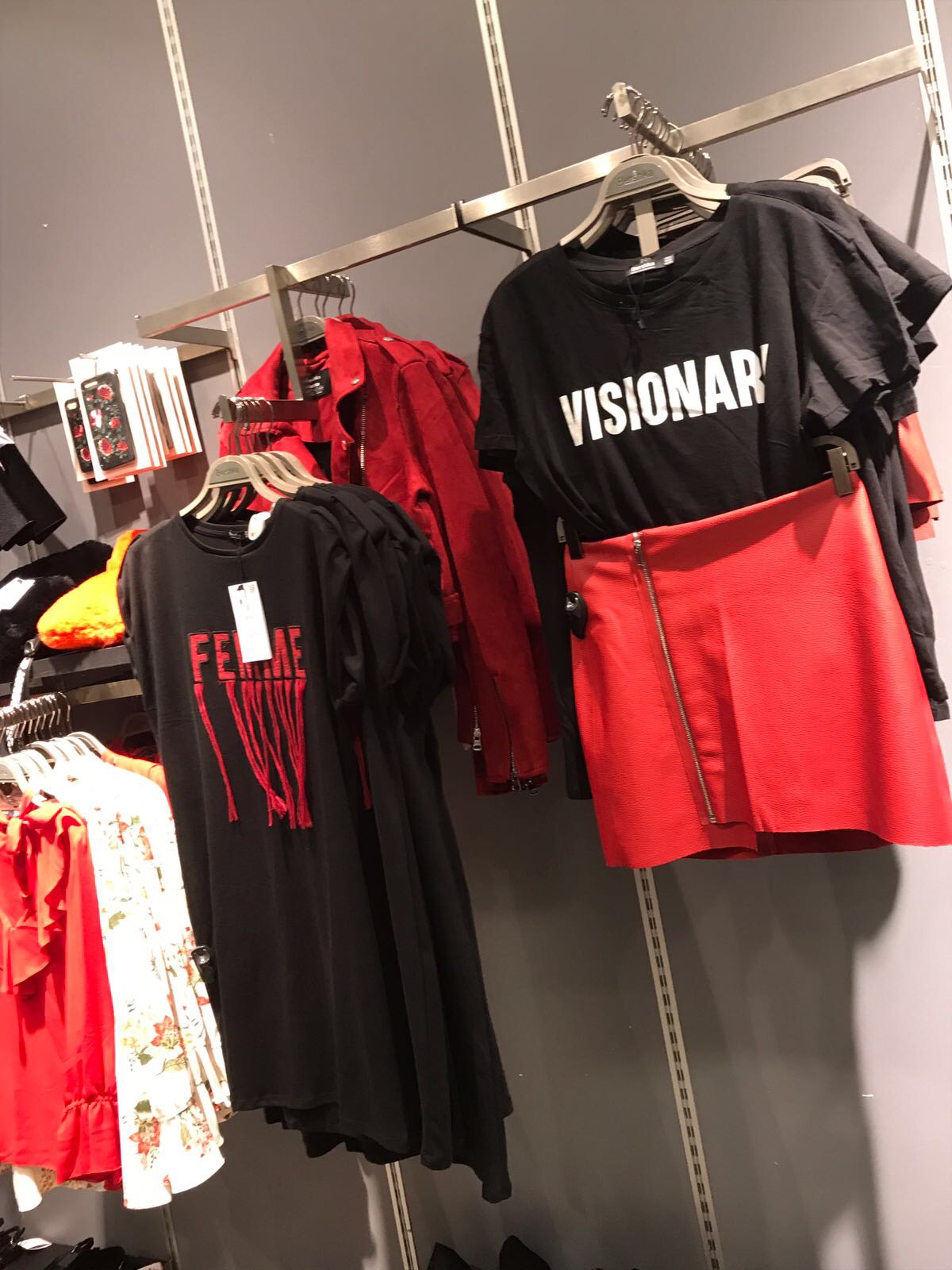 Tanto en Bershka como en Lefties combinan el rojo con el negro. Nos encanta.