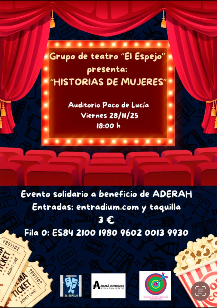 La compañía de teatro alcalaína ‘El Espejo’ invita a disfrutar de una obra cómica que, con el título de ‘Historias de mujeres’, hará sonreír y reflexionar al público que allí se acerque.