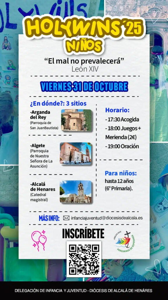 Por eso, la delegación de infancia y juventud, y la escuela diocesana de evangelización de la diócesis de Alcalá organizan el jueves 31 de octubre de 2025 la vigésimotercera edición de la fiesta de ‘Holywins’.
