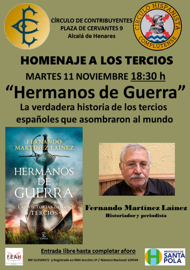 La primera conferencia del ciclo se celebra este martes 11 de noviembre, a las 18:30 horas, y será impartida por el historiador y periodista Fernando Martínez Laínez y versará sobre ‘Hermanos de Guerra: La verdadera historia de los tercios españoles que asombraron al mundo’.