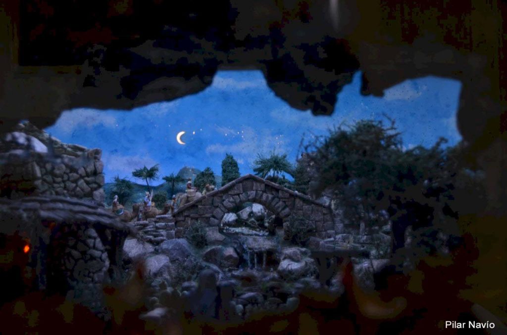 Casi todas las figuras son suyas, menos un par de ellas. «Una que nos han dejado de temática franciscana. Y luego nuestro queridísimo Juan Rubio, que es belenista, ha recreado muchas de las vitrinas que tenemos, y ha puesto algunas de sus mejores figuras, aparte del Belén grande, que también hizo el año pasado».