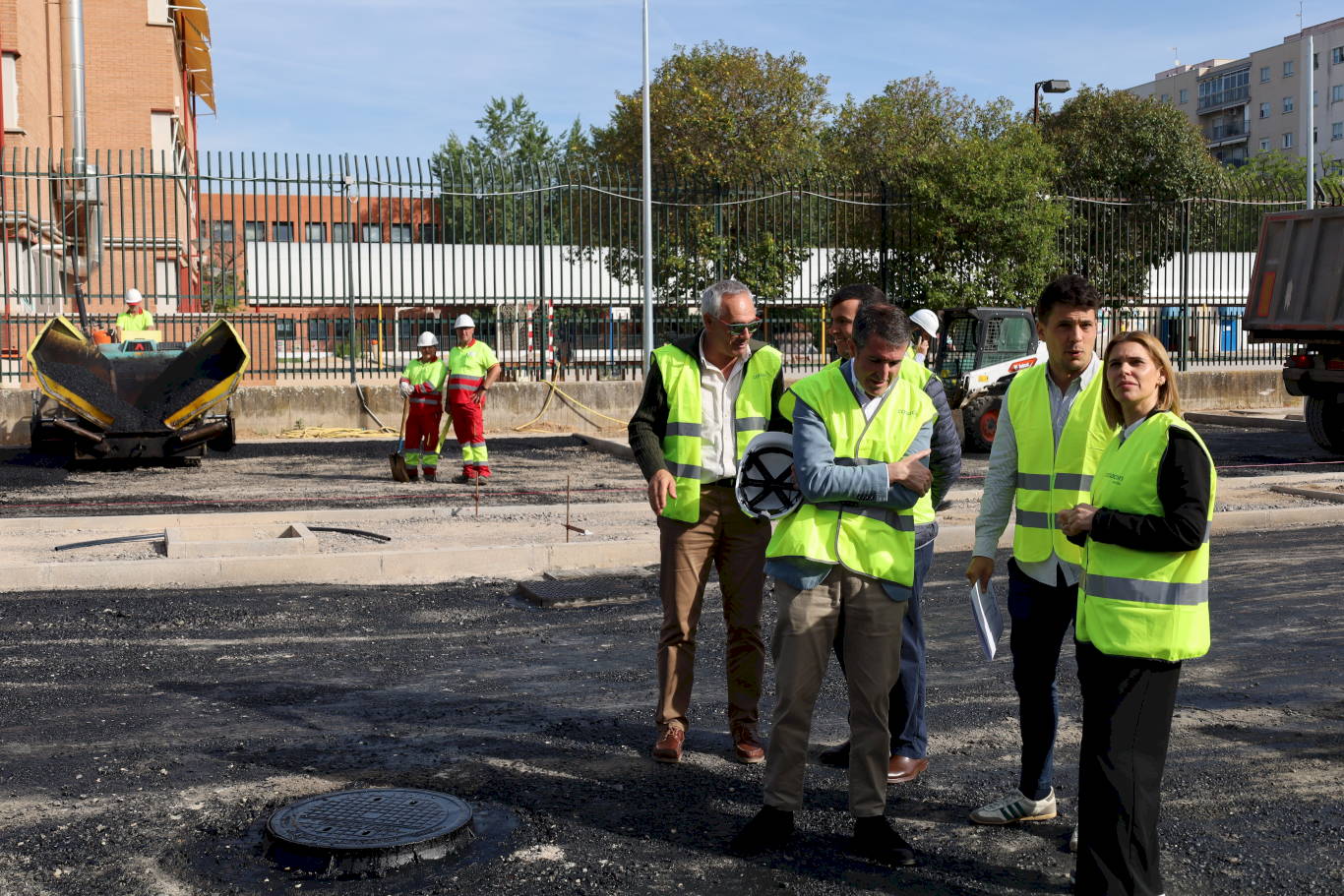 La alcaldesa Judith Piquet, acompañada del concejal de Obras, Antonio Saldaña, visitó los trabajos del nuevo aparcamiento público de la calle Luis Vives, que abrirá próximamente, y aformó que “lo que antes era un terreno de polvo en verano y barro en verano, sin luz ni seguridad, ahora es un aparcamiento moderno”.