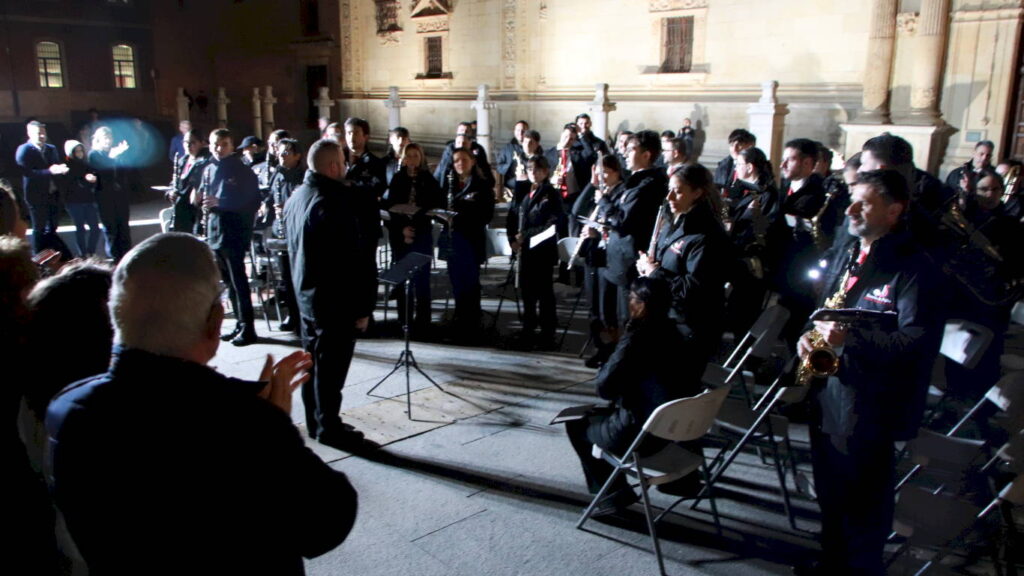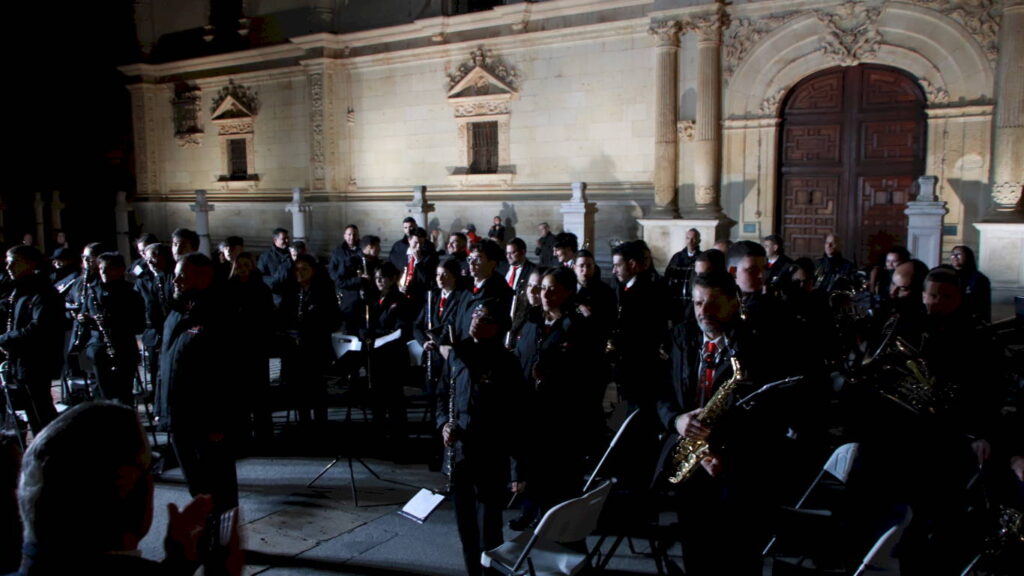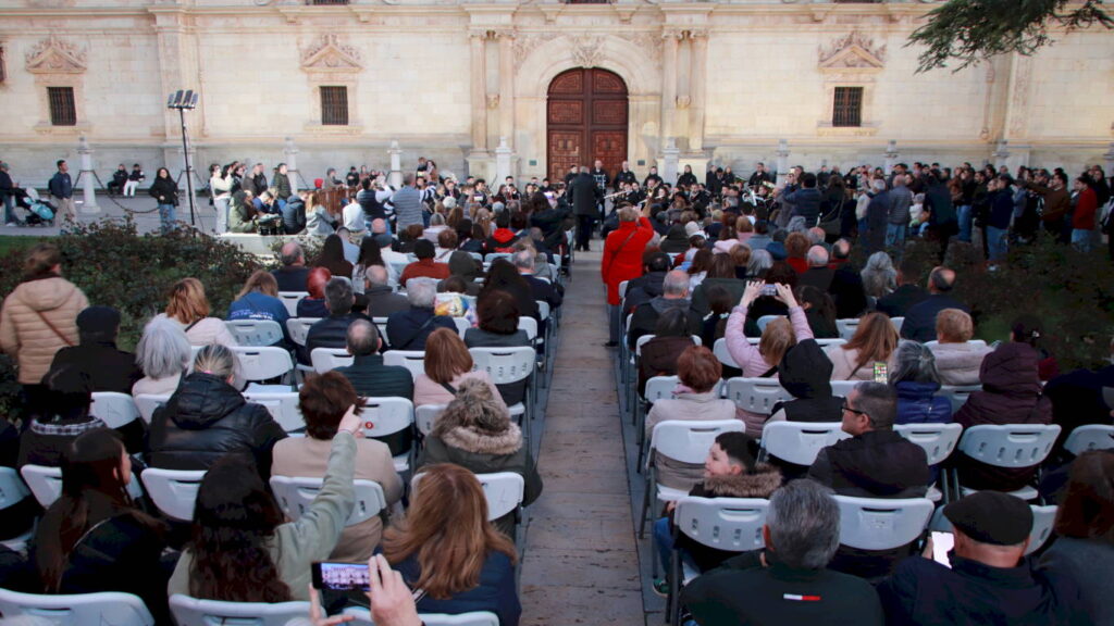 La muestra finalizó en la Plaza de San Diego con un concierto de marchas procesionales frente a la fachada de la Universidad de Alcalá (ver vídeo superior) donde, bajo la dirección de Martín Rabadán, se interpretaron composiciones como La Saeta La Virgen de Sevilla Pasan los Campanilleros y Tú eres el orgullo de nuestro pueblo, destacando especialmente la interpretación de Virgen de los Estudiantes por el entorno monumental de la plaza y el broche final con La Madrugá que cerró el ciclo de música procesional de la jornada antes de dar paso a los días centrales de la Semana Santa complutense.
