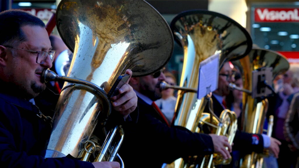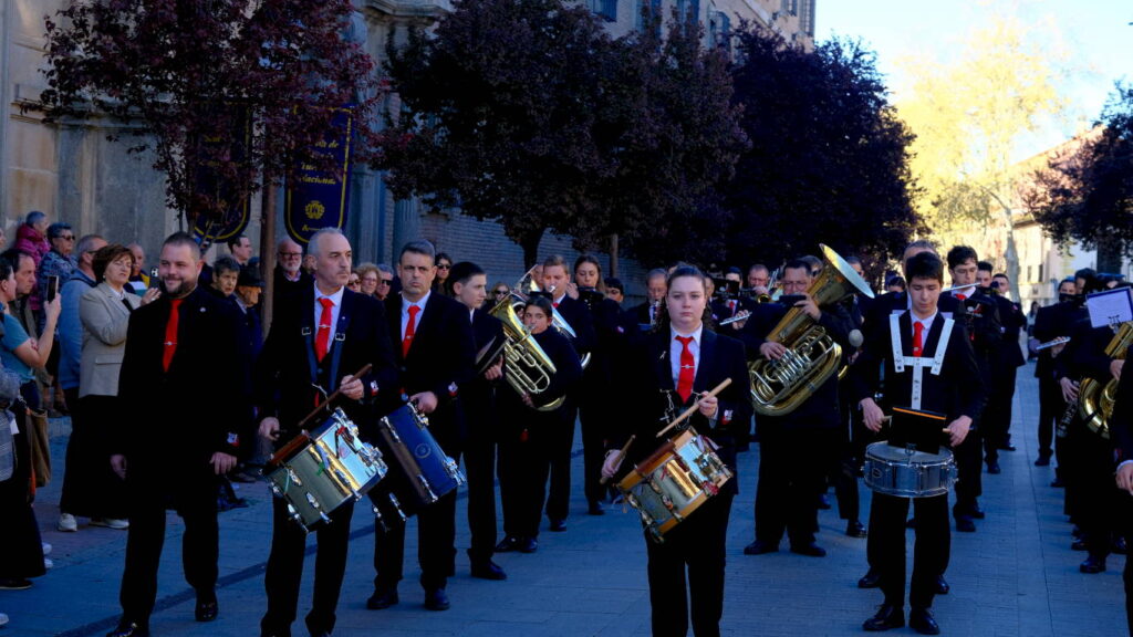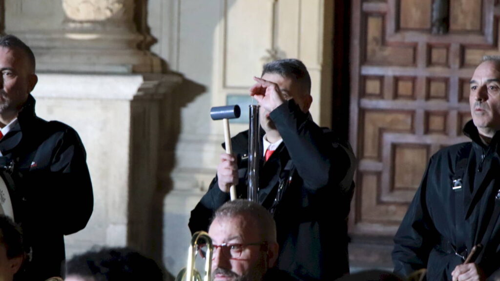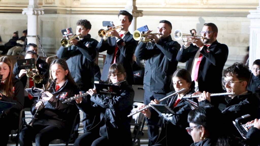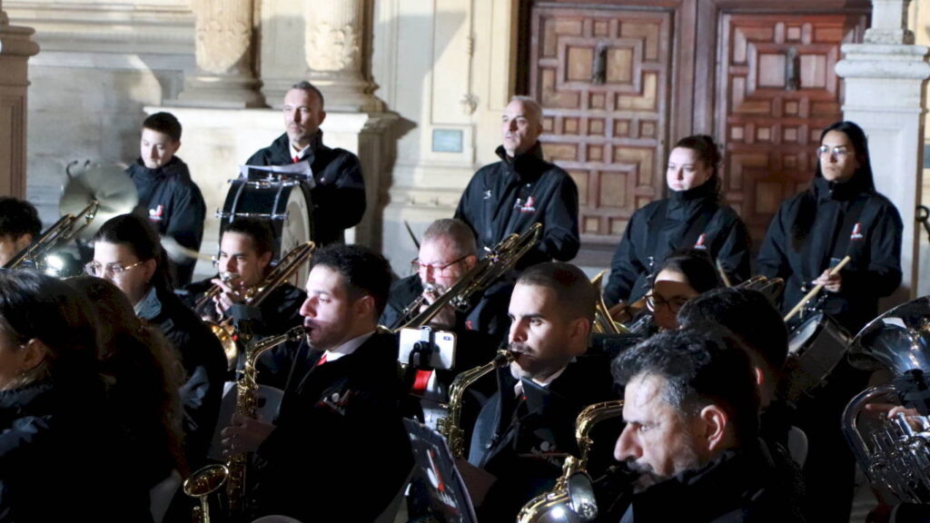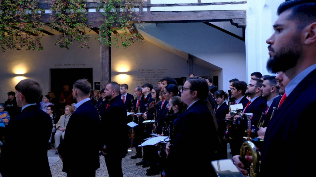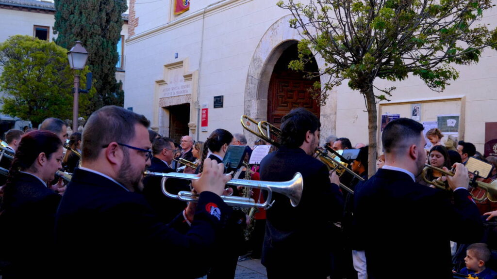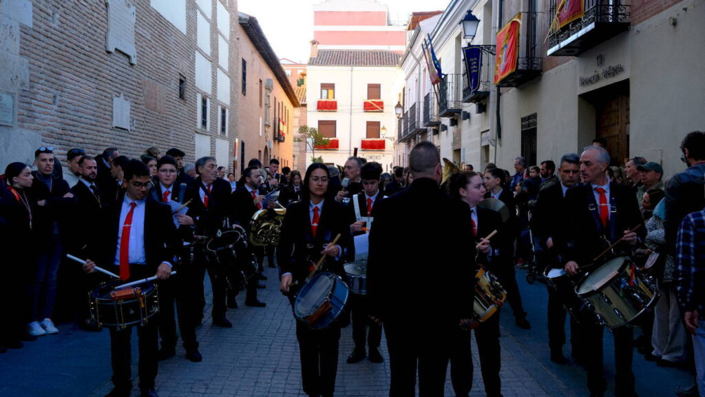 La Banda de Palio de Juventudes Musicales de Alcalá de Henares celebró este Martes Santo la cuarta edición de la Muestra de Música Procesional en un evento organizado en colaboración con la Concejalía de Fiestas y Tradiciones Populares que consistió en un itinerario por las principales vías del casco histórico y un concierto final en la Plaza de San Diego bajo la dirección de Héctor Martín Rabadán.