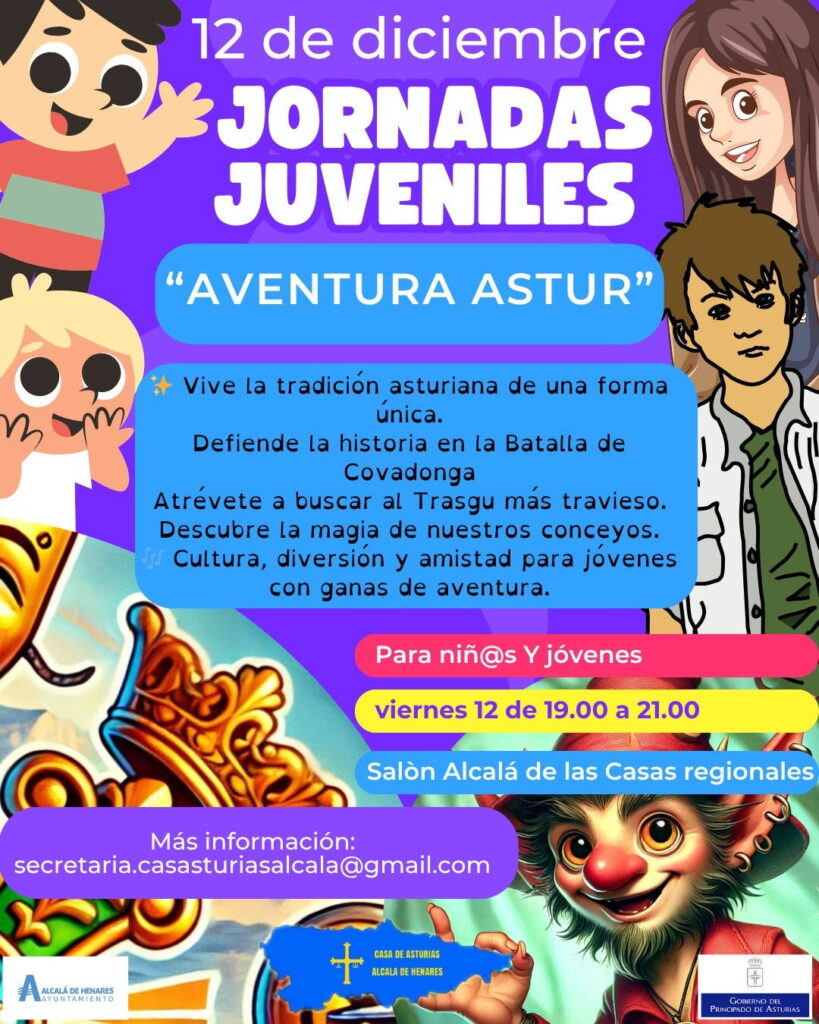 La Casa de Asturias ha organizado una Jornada Juvenil dirigida a jóvenes, madres y padres con hijos, con el objetivo de acercar la cultura asturiana a través de una propuesta lúdica, dinámica y abierta a todo el público. La iniciativa se celebrará el viernes 12 de diciembre, de 19:00 a 21:00 horas, en el Salón Alcalá de las Casas Regionales, y ofrecerá un recorrido interactivo por algunos de los elementos más representativos del patrimonio histórico y tradicional de Asturias. Una oportunidad para vivir la tradición asturiana de una forma única.