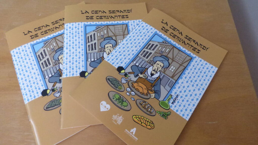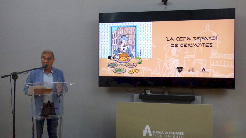 El salón de actos de la concejalía de Turismo de Alcalá de Henares acogió, este jueves, 23 de octubre, la presentación del libro La cena sefardí de Cervantes, un recetario ideado por el chef complutense Iván Plademunt, con las ilustraciones del dibujante alcalaíno José Rubio ‘Malagón’, que recupera los sabores y la herencia gastronómica de la comunidad judía en la Alcalá medieval.