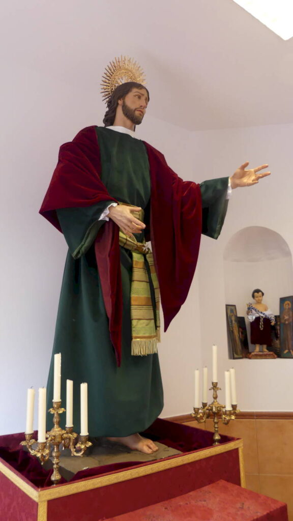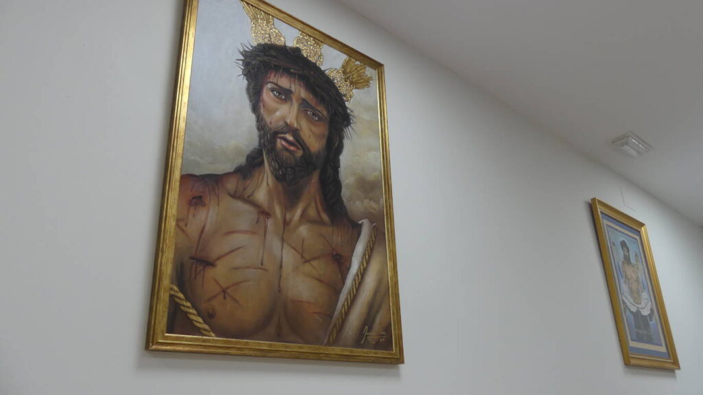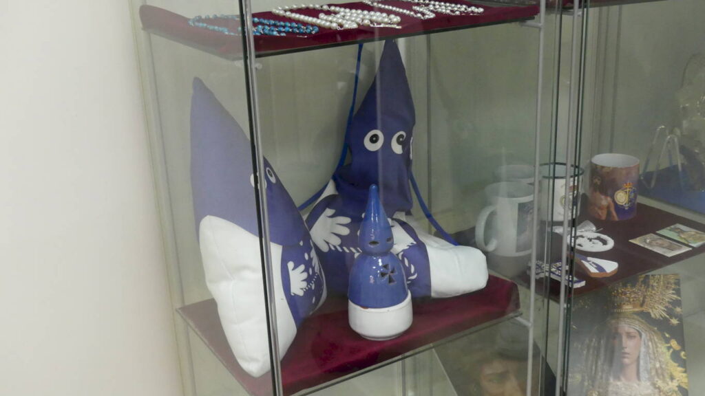 Asimismo, la Casa de Hermandad dispone de una tienda con recuerdos y artículos propios. No obstante, el elemento más significativo es su oratorio, presidido por la imagen de San Juan Evangelista, titular de la Hermandad, que se convierte en el eje espiritual del conjunto.