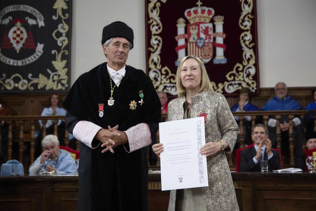 Asimismo, se ha procedido a la entrega de Medallas de Plata Honoríficas de la UAH, concedidas a la Fundación Rodolfo Benito Samaniego; a Amparo Valcarce, secretaria de Estado de Defensa; a Mariano Jabonero, secretario general de la Organización de Estados Iberoamericanos para la Educación, la Ciencia y la Cultura (OEI); al profesor emérito Santiago García Echevarría, y a Jesús La Roda, miembro del colectivo de Personal de Administración y Servicios de la UAH.