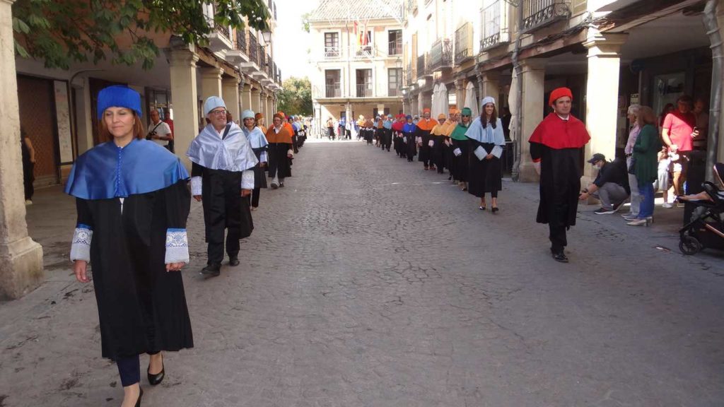 Doctores, profesores, estudiantes y el Rector, junto a las autoridades eclesiásticas, todos encabezados por los mazeros de la Universidad de Alcalá, realizaron el tradicional recorrido por el casco histórico de Alcalá de Henares hasta el Paraninfo del Colegio de San Ildefonso, tal y como hicieron los bachilleres en su primer día de clase, hace ya más de 500 años, en la Apertura del Curso Académico Universitario.