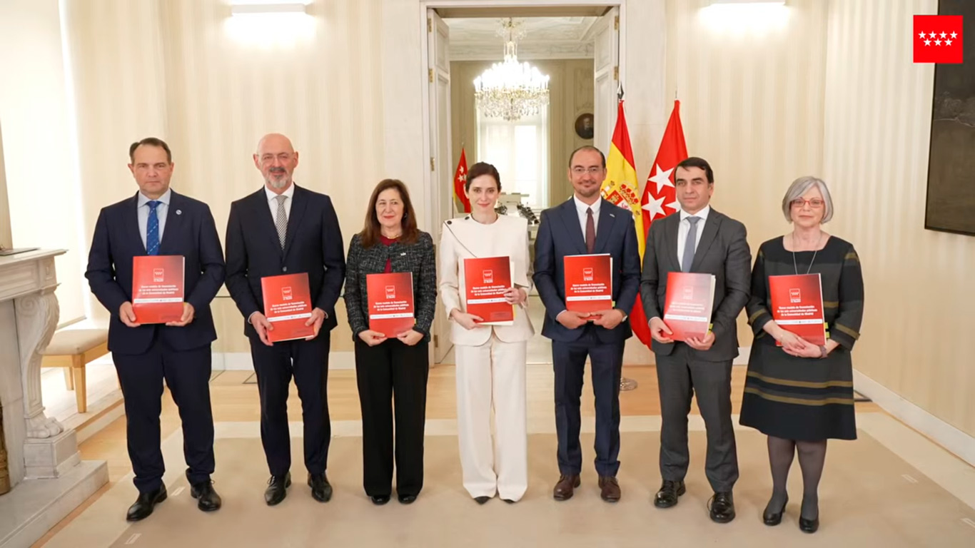 La presidenta de la Comunidad de Madrid, Isabel Díaz Ayuso, ha firmado hoy con los rectores de las seis universidades públicas madrileñas (Complutense, Autónoma, Politécnica, Alcalá, Carlos III y Rey Juan Carlos) el nuevo modelo de financiación elaborado por el Gobierno regional, por el que obtendrán 14.790,7 millones de euros en el periodo 2026-2031. Se trata de un acuerdo histórico en la Comunidad de Madrid porque por primera vez estas instituciones educativas contarán con un plan plurianual.