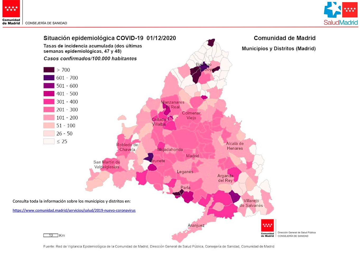 Al cierre del día anterior, el martes 1 de diciembre, la Comunidad de Madrid suma un total de 358.431 pacientes afectados por COVID-19 en datos contrastados con prueba PCR. La Consejería de Sanidad ofrece el dato de 1.453 casos nuevos notificados incorporados, 579 de ellos en las últimas 24 horas.