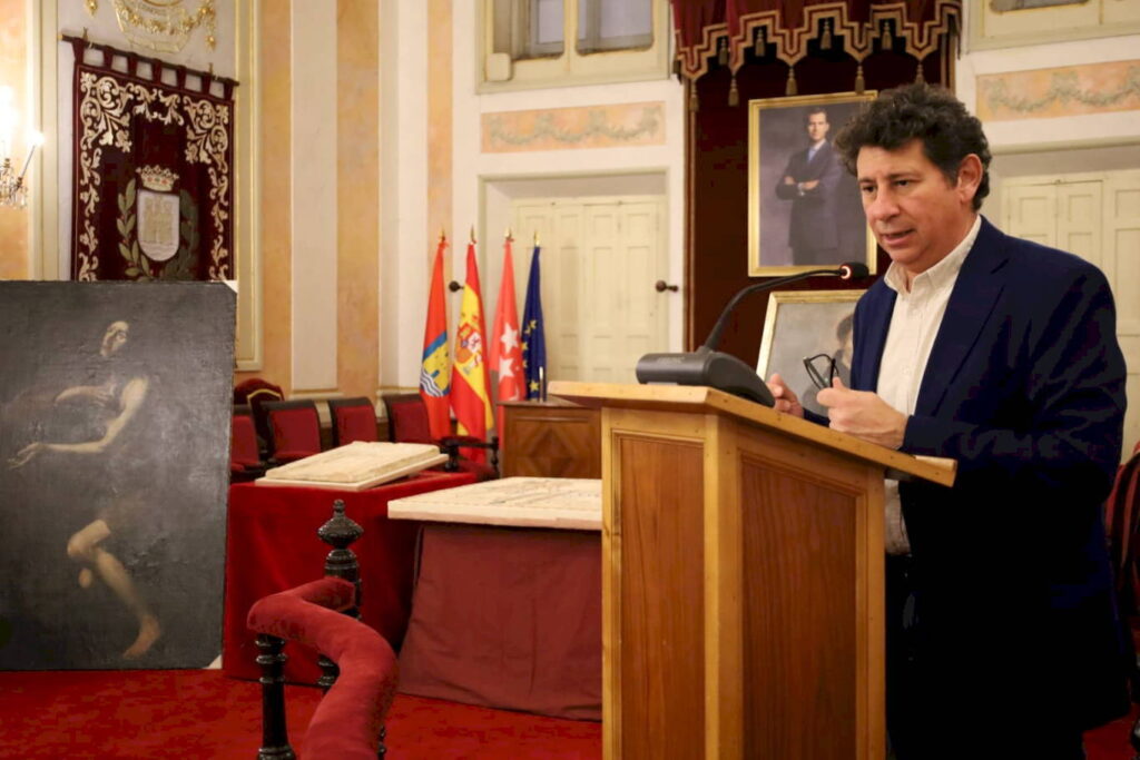 El concejal de Patrimonio Histórico, Vicente Pérez, ha presentado este lunes en el Salón de Plenos «Alcalá Restaura» con el objetivo de poner en valor la labor sistemática que realiza su área en la restauración de bienes culturales, en un acto en el que también han estado presentes el teniente de alcalde Gustavo Severien, así como algunos de los restauradores de estos bienes, como Alicia López, Ignacio César Sanz, María Concepción Moreno o Natalia López-Sors.