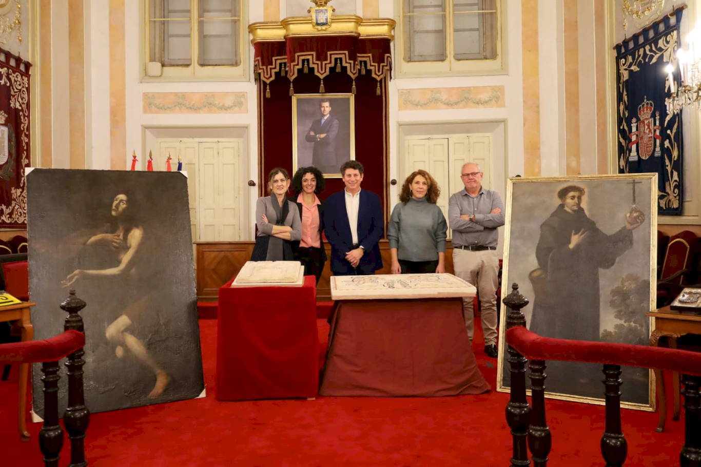 En esta ocasión, se presenta una selección de bienes muebles que ejemplifican esta labor discreta y continua. Entre ellos destacan: un óleo sobre lienzo de San Juan de Dios del siglo XVII; cuatro reposteros de 1945 pertenecientes al patrimonio de la Casa Consistorial; tres placas direccionales de la antigua señalética de la ciudad; la reproducción del Mosaico de Cupidos de Complutum, realizada en la década de 1990 a partir del original conservado en el Museo Arqueológico Nacional, recientemente restaurada; una maqueta de la Alhambra realizada en la segunda mitad del siglo XIX en la escuela de Rafael Contreras, y también un lienzo de Santa María Egipciaca del siglo XVII.
