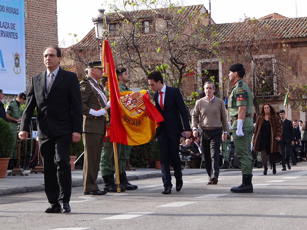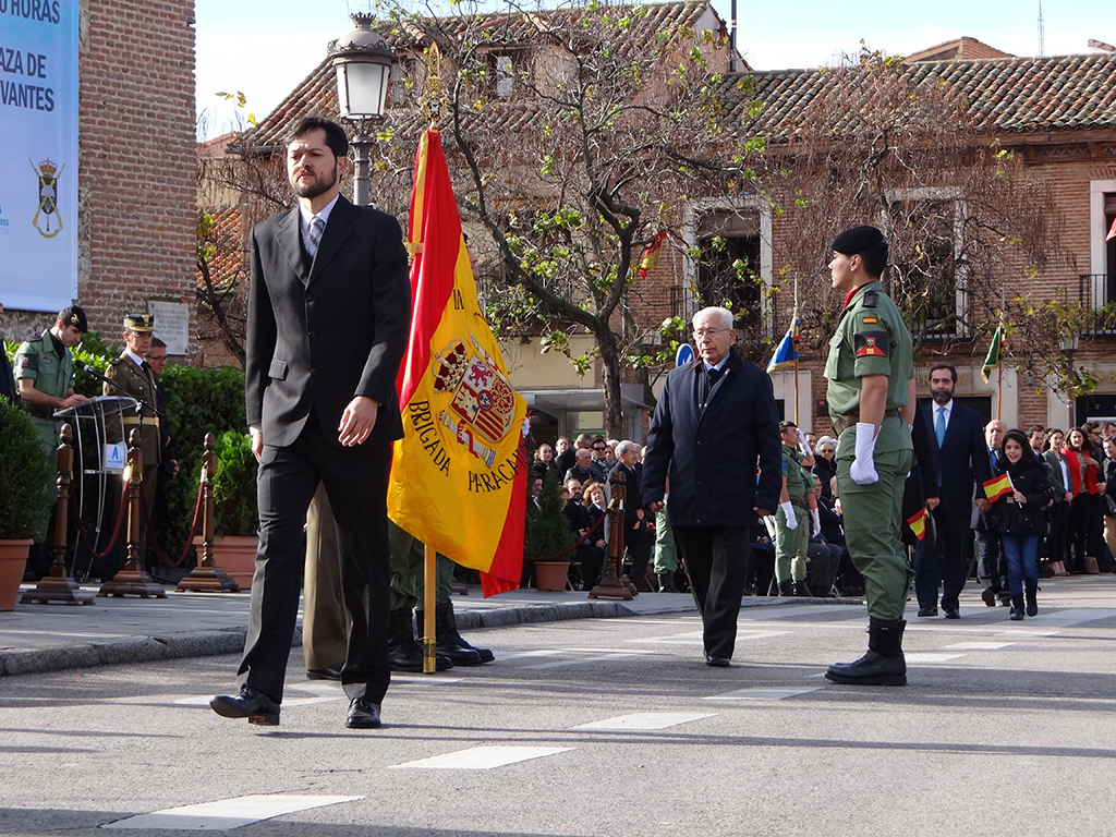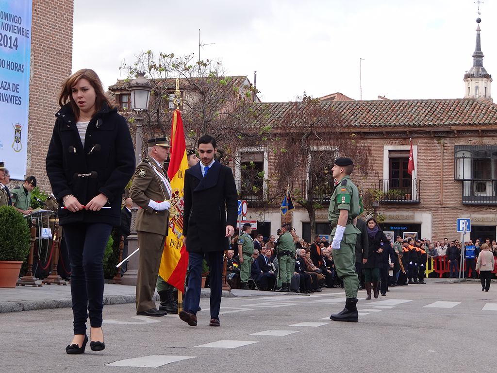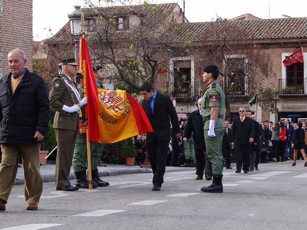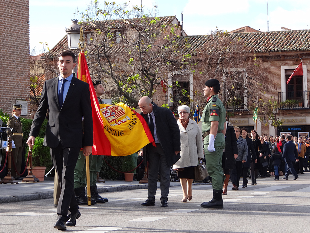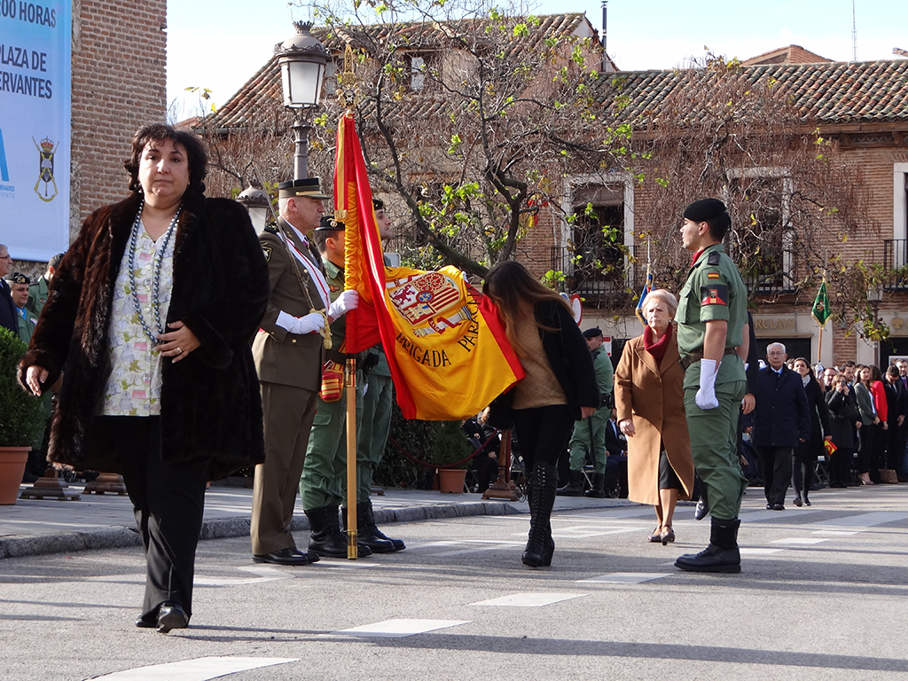 Gran afluencia de público y de participantes civiles a la Jura de Bandera celebrada ayer en la en la Plaza de Cervantes de Alcalá de Henares. Más de 200 personas, entre las que destacó un gran número de mujeres, se animaron a jurar o prometer lealtad a la bandera y a la patria. El general jefe de la Brigada Paracaidista (BRIPAC), general Jesús Cifuentes, fue el encargado de tomar juramento a los participantes.