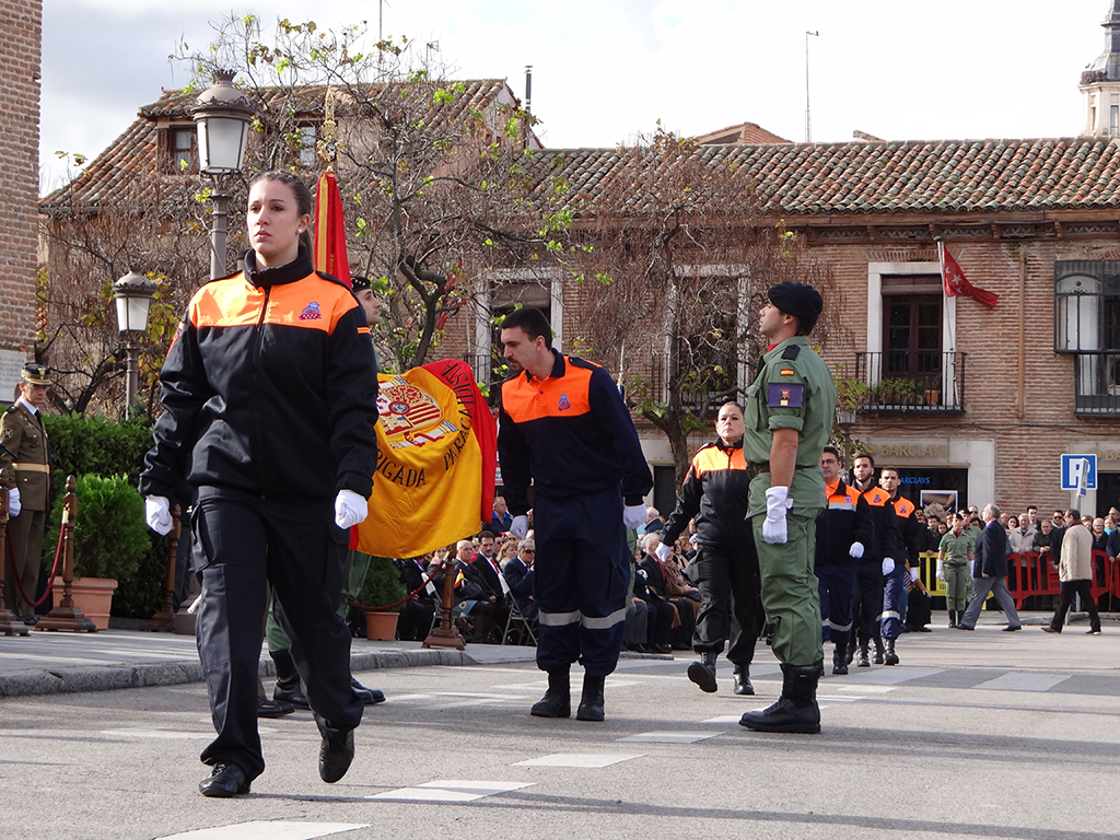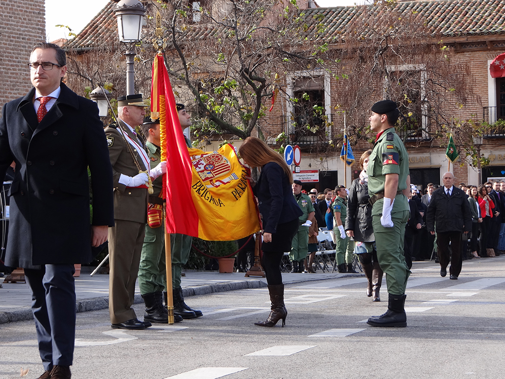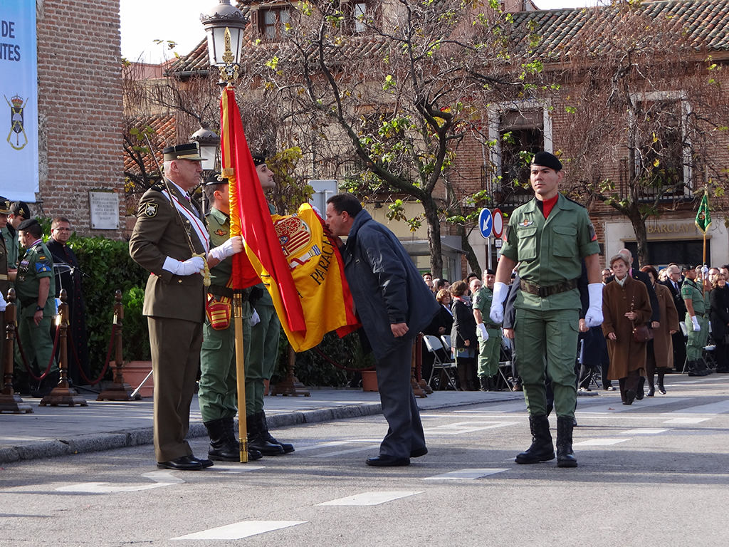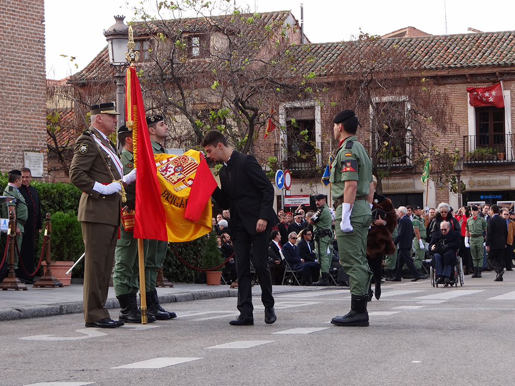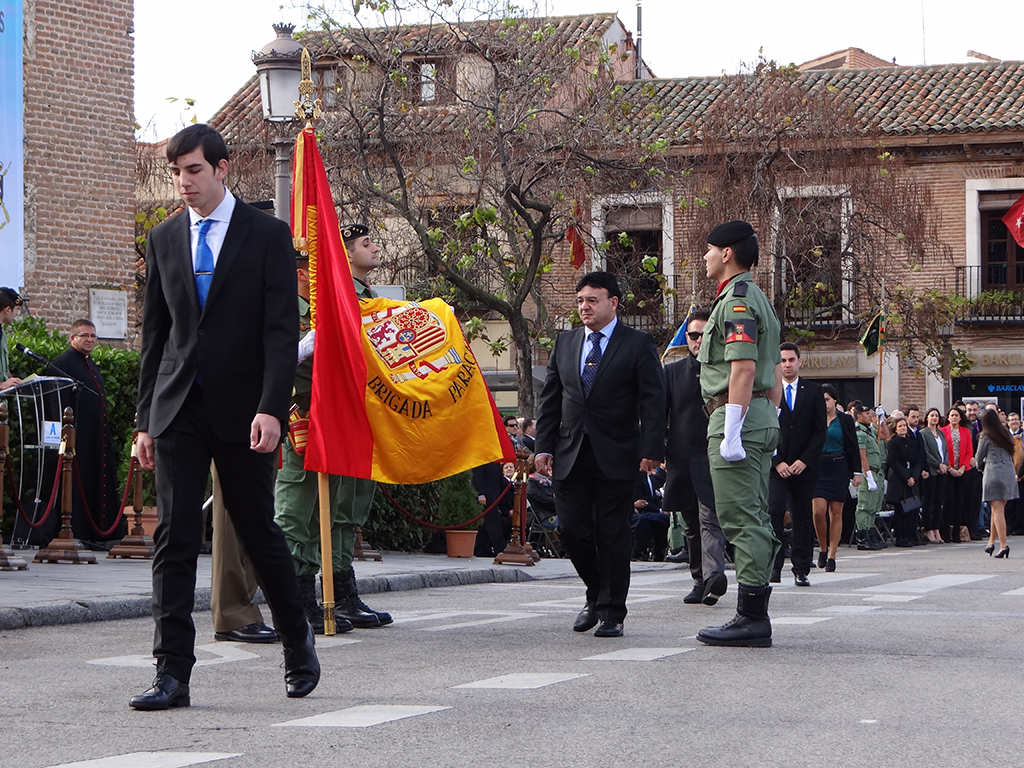 Gran afluencia de público y de participantes civiles a la Jura de Bandera celebrada ayer en la en la Plaza de Cervantes de Alcalá de Henares. Más de 200 personas, entre las que destacó un gran número de mujeres, se animaron a jurar o prometer lealtad a la bandera y a la patria. El general jefe de la Brigada Paracaidista (BRIPAC), general Jesús Cifuentes, fue el encargado de tomar juramento a los participantes.