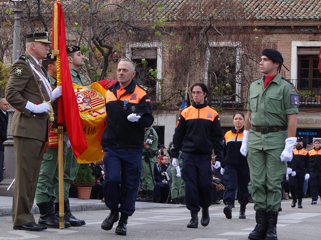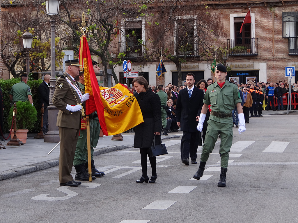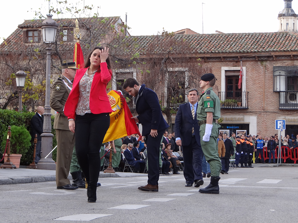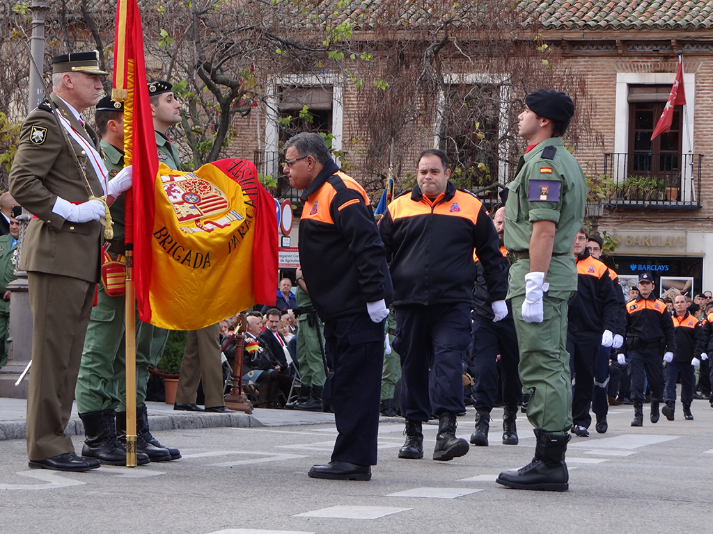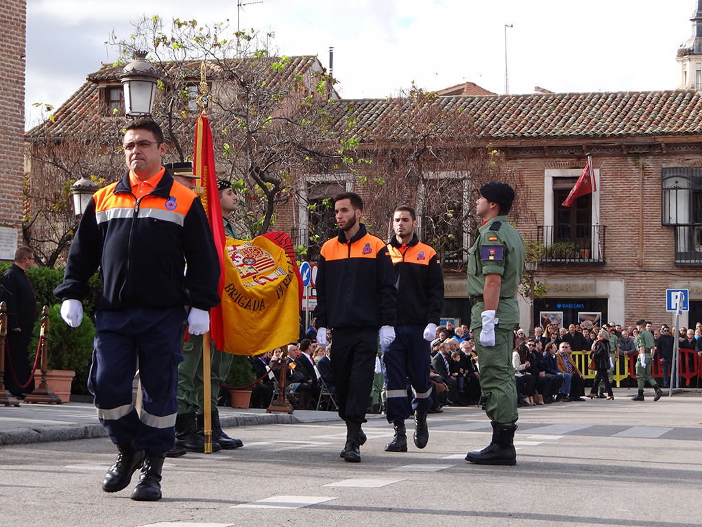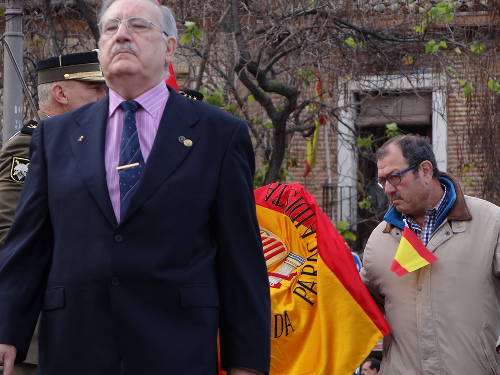 Gran afluencia de público y de participantes civiles a la Jura de Bandera celebrada ayer en la en la Plaza de Cervantes de Alcalá de Henares. Más de 200 personas, entre las que destacó un gran número de mujeres, se animaron a jurar o prometer lealtad a la bandera y a la patria. El general jefe de la Brigada Paracaidista (BRIPAC), general Jesús Cifuentes, fue el encargado de tomar juramento a los participantes.
