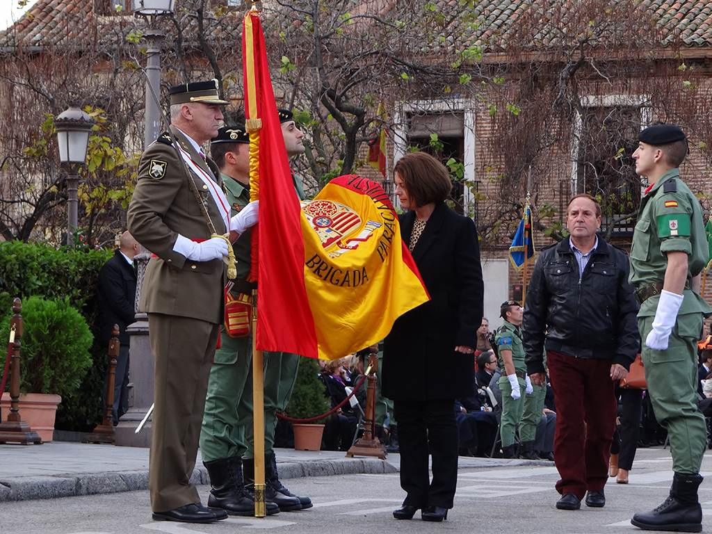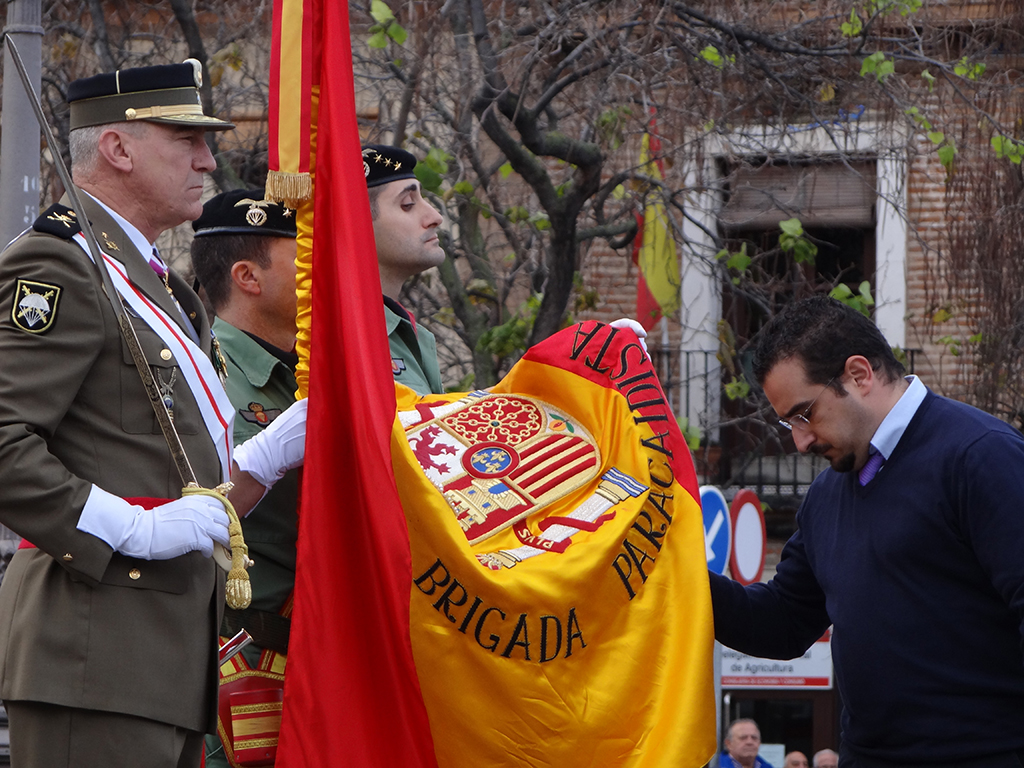 La bandera sobre la que se ha efectuado el juramento fue donada por el Ayuntamiento de Alcalá de Henares a la Brigada Paracaidista en noviembre de 2009. Desde su fundación en 1953, la historia de las Unidades Paracaidistas del Ejército de Tierra ha estado íntimamente ligada a la ciudad de Alcalá de Henares, situación que se mantiene pese al nuevo emplazamiento de la BRIPAC en Paracuellos de Jarama.