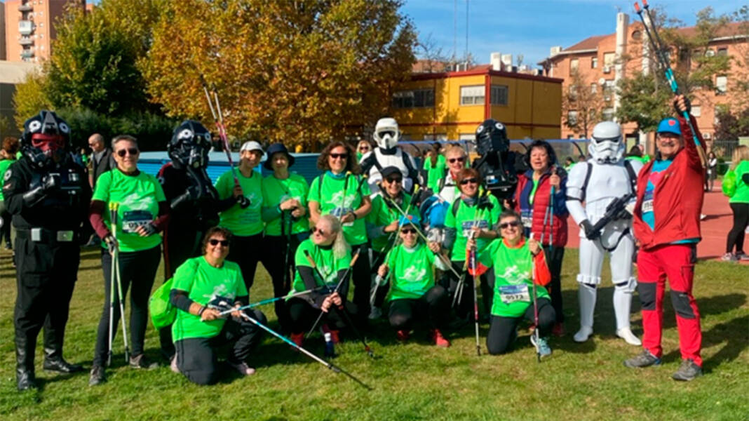 15 miembros de la Escuela de marcha nórdica se unieron a la jornada solidaria y deportiva convocada por la Asociación Española contra el cáncer de Alcalá de Henares, para apoyar su labor y dar visibilidad a todas las personas y familias que conviven con esta enfermedad.