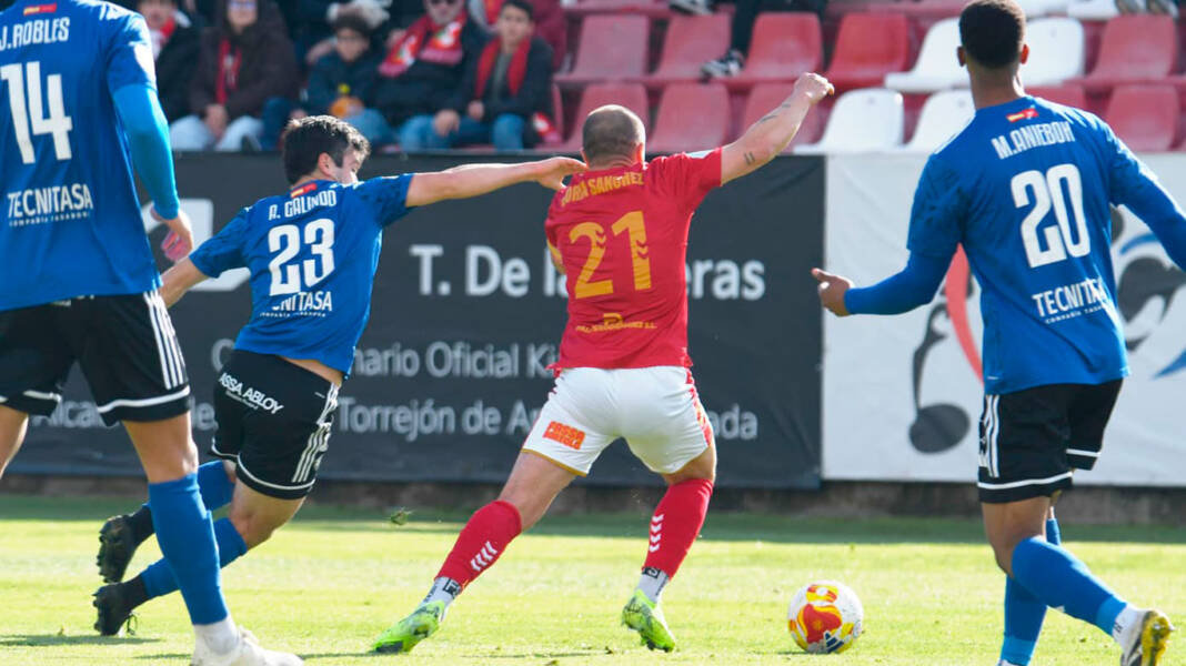 Lejos de encogerse, los rojillos se metieron de lleno en el encuentro. Las ocasiones comenzaron a encadenarse. Nieto probó fortuna desde la frontal con un disparo potente que obligó al guardameta sansero Lejárrafa a lucirse. Parecía que el empate era cuestión de tiempo, y llegó tras un centro perfecto de Javi Hernández y aparición certera de Dani Marín en el área para firmar el 1-1 con un disparo incontestable.