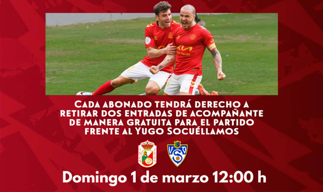 Así, de cara al partido frente al Yugo Socuéllamos del 1 de marzo a las 12:00 horas, regalan dos entradas a cada abonado. Para poder retirarlas, los socios deben acudir con su abono a las oficinas del club, situadas en el Estadio Municipal El Val.