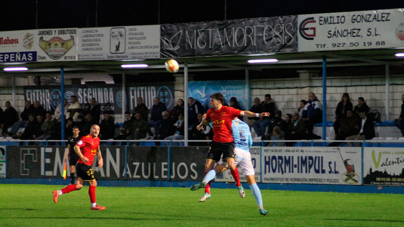 El empate (1-1) ante el Coria fue el reflejo de un partido intenso, muy condicionado por la lluvia y en el que los rojillos supieron competir, sufrir y quedarse a centímetros de una victoria que rozaron con los dedos con la última ocasión de su capitán, Borja Sánchez.