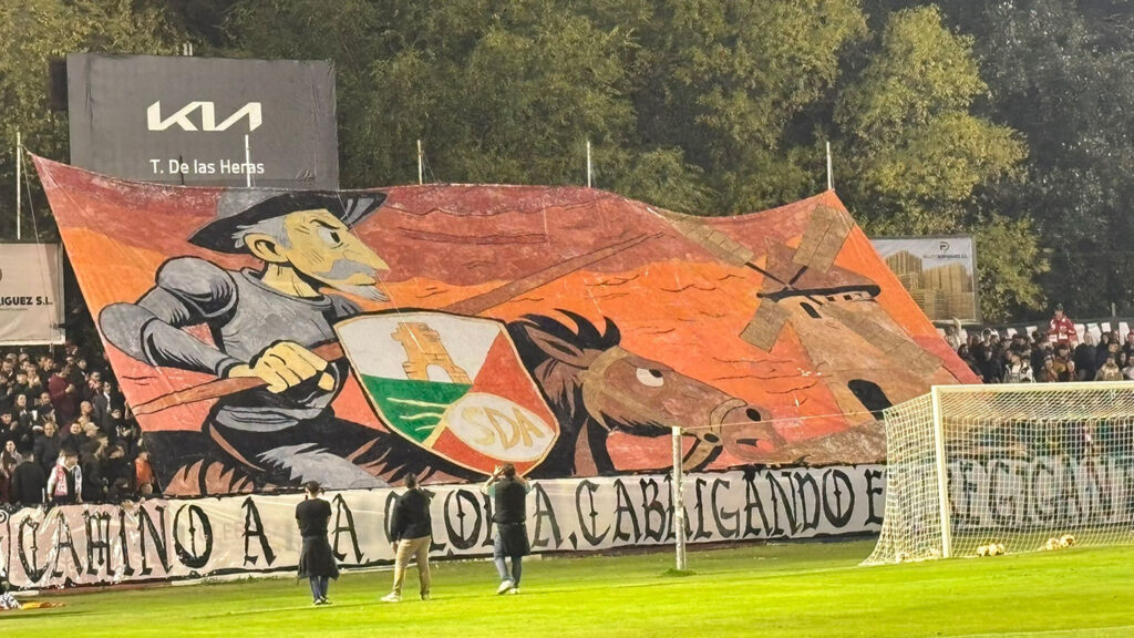 Ambiente de gala en las gradas de El Val, algo a lo que nos estamos acostumbrando de cuando en cuando, aunque cada vez más de seguido, gracias a ascensos y noches coperas. Gradas llenas y animación constante, todo precedido de un tifo histórico en el fondo y el homenaje a Pier Luigi Cherubino que jugó más de seis temporadas en la Isla y se retiró como futbolista en Alcalá.