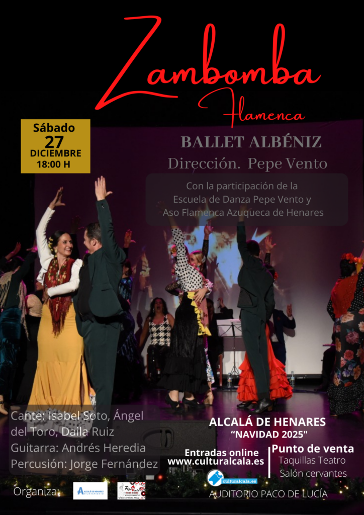 El espectáculo de ballet Albéniz, dirigido por Pepe Vento, La Zambomba Flamenca, se representará el próximo sábado 27 de diciembre a las 18:00 horas en el Auditorio Municipal Paco de Lucía.
