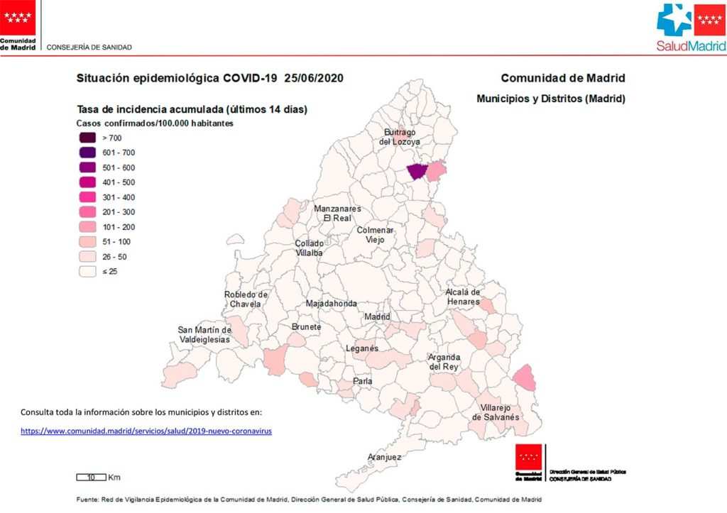 Al cierre de ayer, 25 de junio, la Comunidad de Madrid suma un total de 73.052 pacientes afectados por COVID-19 en datos contrastados con prueba PCR. Son en total 188 casos nuevos notificados incorporados, 34 de ellos notificados en las últimas 24 horas.