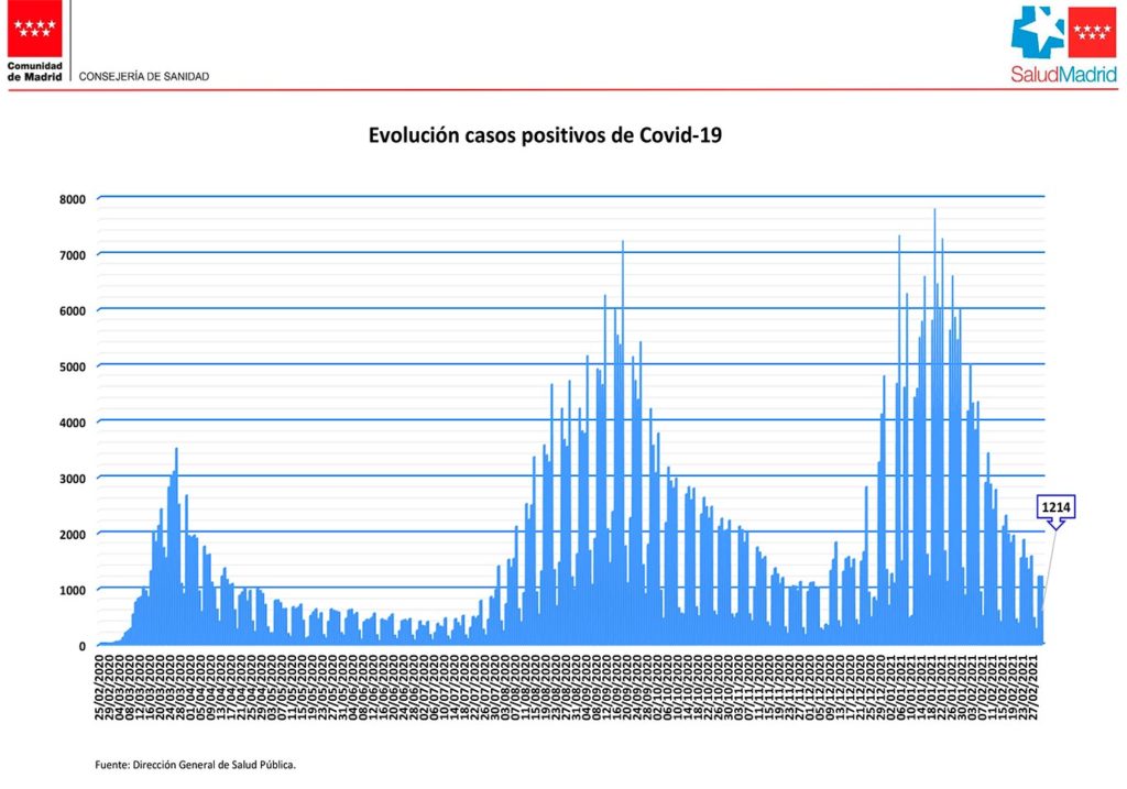 Al cierre del día anterior, el miércoles 3 de marzo, la Comunidad de Madrid suma un total de 601.144 pacientes afectados por coronavirus en datos contrastados desde el inicio de la pandemia. La Consejería de Sanidad ofrece el dato de 1.500 casos nuevos notificados incorporados, 1.214 de ellos en las últimas 24 horas.