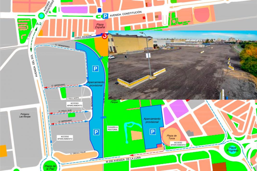 El gran aparcamiento provisional principal, conocido como el de las Fiestas Populares, tiene 2.000 plazas, nueva iluminación y compactación. Y el segundo se sitúa en el mercadillo, junto a la zona de conciertos y tiene 1.500 plazas. Será utilizable todos los días menos los miércoles por la mañana, día de mercadillo.