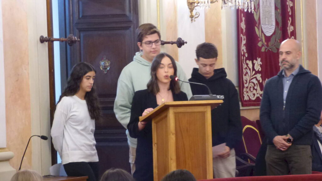 El Salón de Plenos del Ayuntamiento ha acogido una lectura pública de artículos de la Constitución Española en vísperas de la celebración del 47º aniversario de su aprobación, que tendrá lugar el próximo sábado 6 de diciembre. Este acto, instaurado por el actual equipo de Gobierno en 2023, está abierto a la participación de la ciudadanía y en esta ocasión los invitados a leer han sido alumnos de 4º de ESO de centros educativos de la ciudad.
