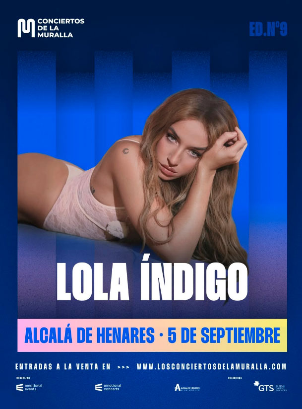 El próximo sábado 5 de septiembre de 2026, Lola Índigo estará en el ciclo de Los Conciertos de La Muralla de Alcalá de Henares. Será una semana después de los conciertos de Ferias donde ya sabemos que estará Vanesa Martín.
