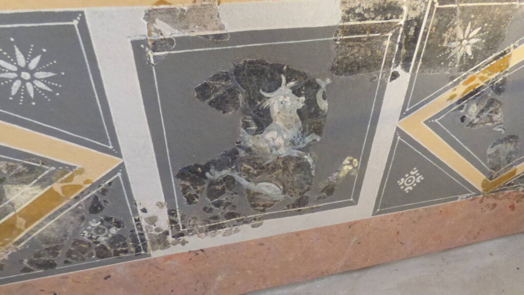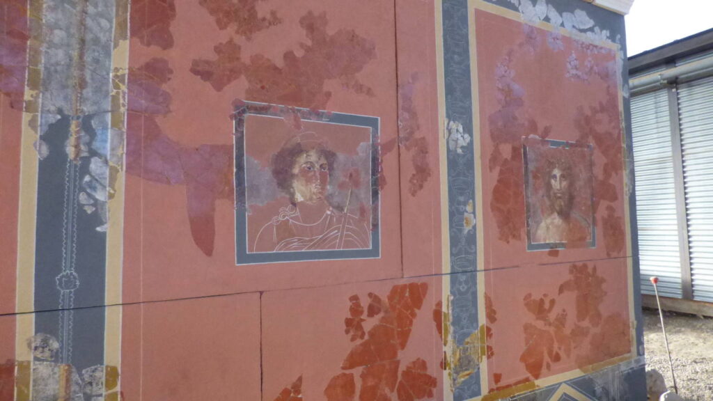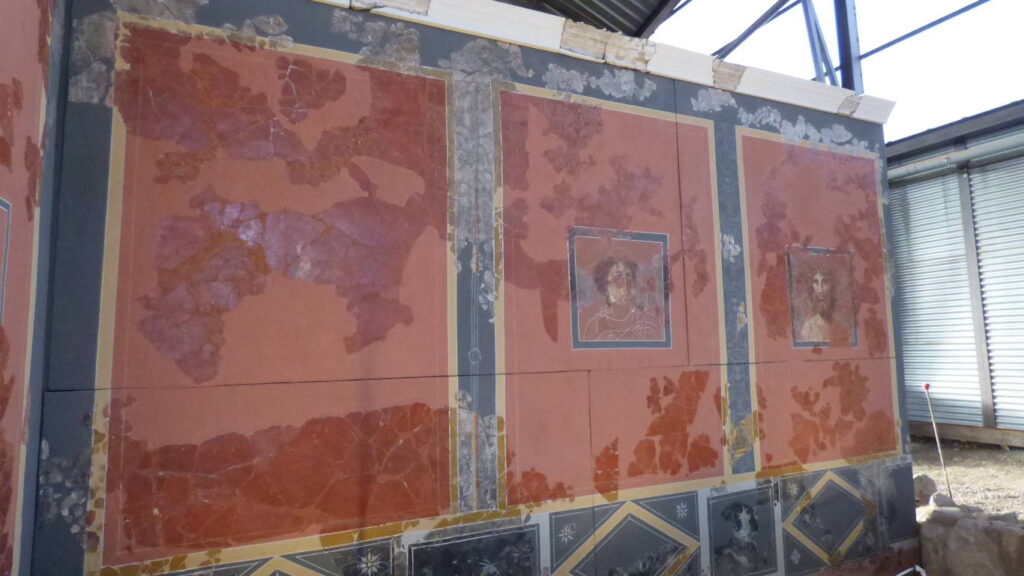 Concretamente, la estancia que ahora se ha presentado al público ha sido objeto de intervenciones, si bien de carácter intermitente, desde el año 2010, cuando comenzaron las excavaciones arqueológicas, reanudándose posteriormente en 2014, 2016 y 2022. Se procedió al mismo tiempo a una restauración de sus estructuras y, sobre todo, de sus pinturas murales, que ha ido pareja a un complicado proceso de investigación y que ha culminado tras una larga intervención entre 2022 y 2024.