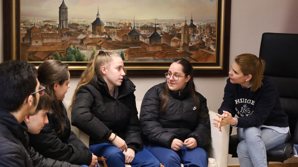 Acompañando a los alumnos ‘abanderados’, el acto ha contado con la presencia de la alcaldesa Judith Piquet que se ha reunido con ellos en el despacho de la dirección del colegio.
