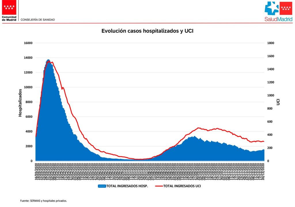 Por primera vez en el mes de diciembre, la cifra de hospitalizados por coronavirus en la Comunidad de Madrid supera los de 1.500 pacientes. Volvemos a datos de últimos días de noviembre con varias jornadas consecutivas en ascenso. Aunque este aumento es muy ligero también es diario y no es una buena noticia de cara a las Fiestas de Navidad.