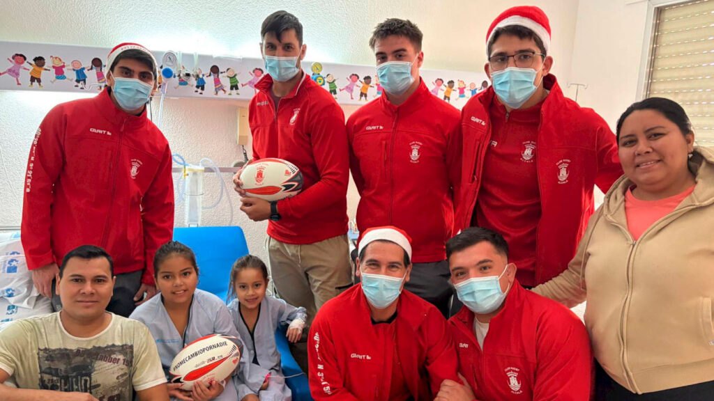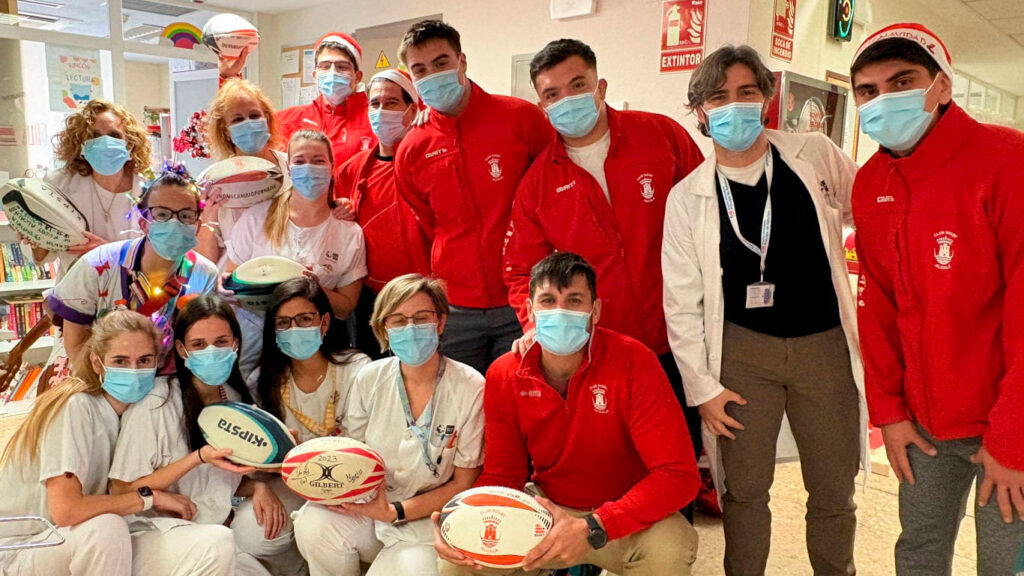 Como ya es tradición por estas fechas, una representación del Club Rugby Alcalá se acercó al Hospital Príncipe de Asturias para dejar un regalo en forma de balón ovalado a los niños y niñas que están ingresados.