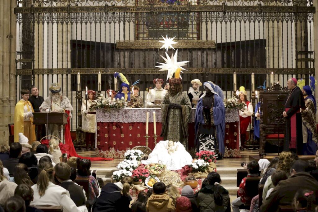16:30 horas. Llegada de los Reyes Magos a la Catedral-Magistral. El Sr. Obispo recibirá a sus Majestades en el interior del templo.