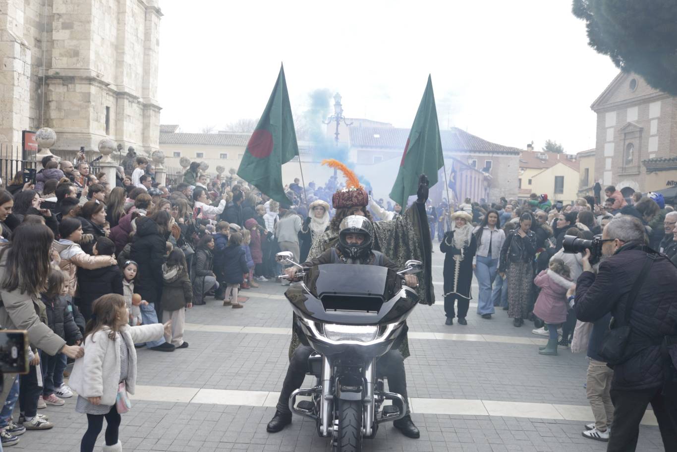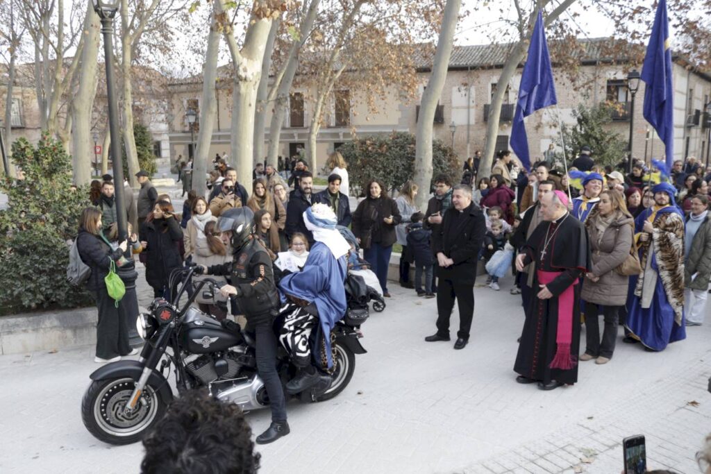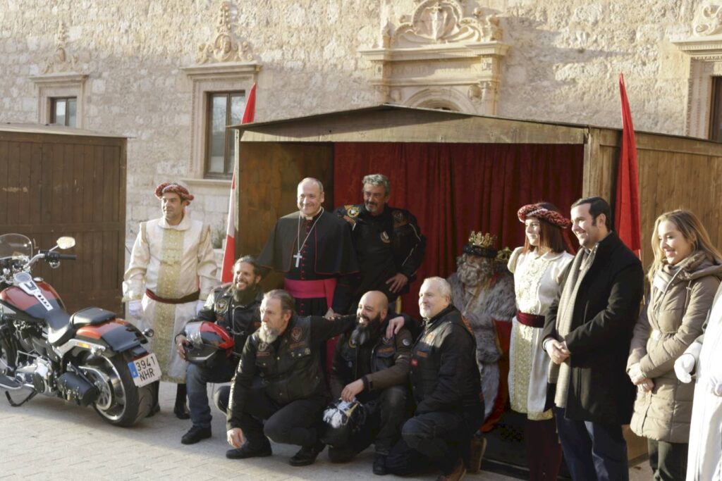 Tras su visita a la Catedral-Magistral Melchor, Gaspar y Baltasar se trasladaron en moto hasta el Palacio Arzobispal. Se sustituían así, los tradicionales caballos por monturas Harley Dadvidson para llegar al patio de armas del palacio donde les esperaban todos los niños.