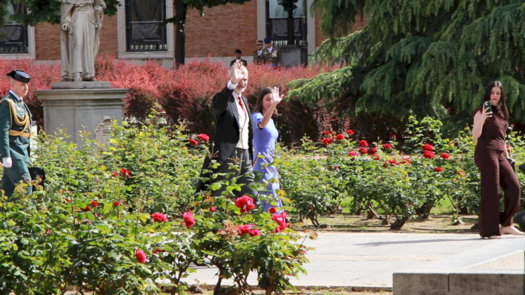 La llegada de los Reyes se ha producido minutos antes del inicio de la ceremonia, en torno al mediodía, siguiendo el patrón habitual de este acto institucional, que cada año atrae a cientos de personas que buscan ver de cerca a los monarcas y a las principales autoridades del país.