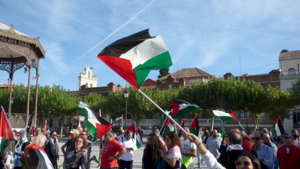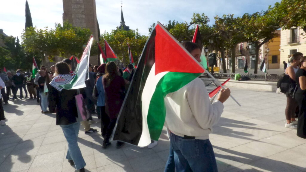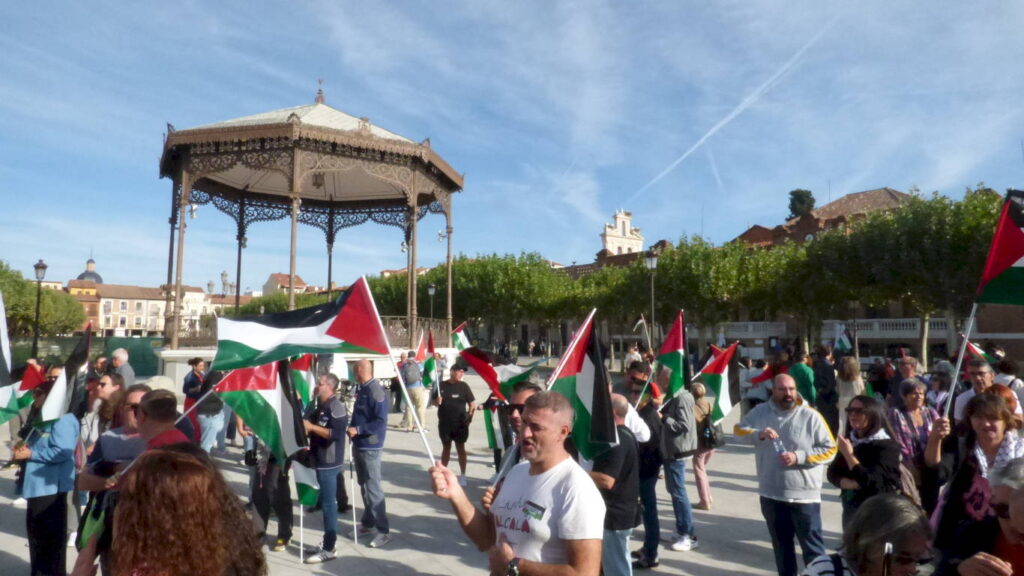 En el marco de una “jornada de lucha estatal contra el genocidio”, convocada por los sindicatos CCOO y UGT, con paros de dos horas por turno, se han dado cita más de un centenar de personas en la plaza de Cervantes de Alcalá de Henares.