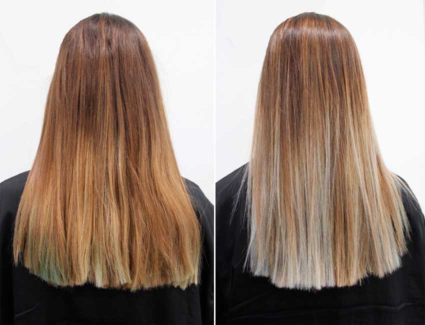 - Montaje de la melena californiana con dos tonos distintos: uno más natural para dar luminosidad a la zona de la raíz y otro más claro de medios a puntas.