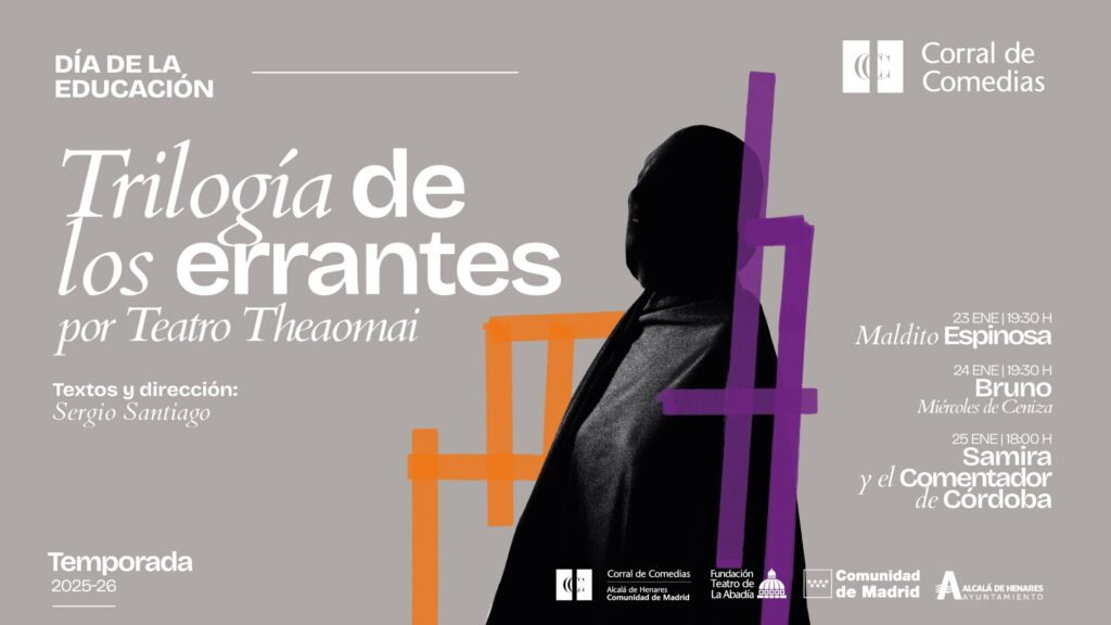 Sergio Santiago y su compañía presentarán, en enero de 2026 en el Corral, con motivo del Día de la Educación, la ‘Trilogía de los errantes’ que engloba ‘Maldito Espinosa’, ‘Bruno (Miércoles de Ceniza)’ y ‘Samira y el Comentador de Córdoba’.